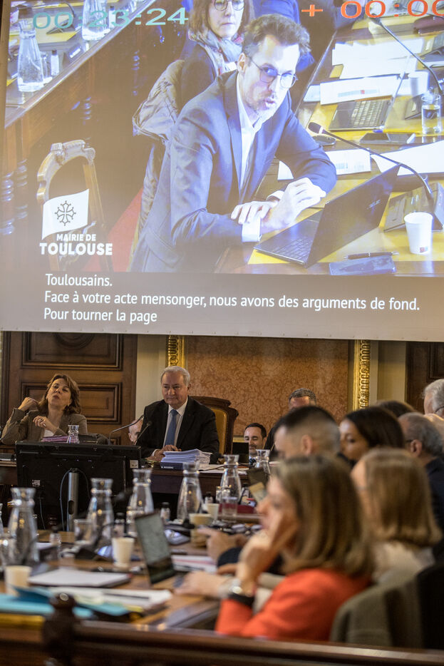 Ambiance pendant le conseil municipal de la Ville de Toulouse qui se reunit alors que les prochaines elections municipales sont prevues pour le 15 et le 22 mars 2026.