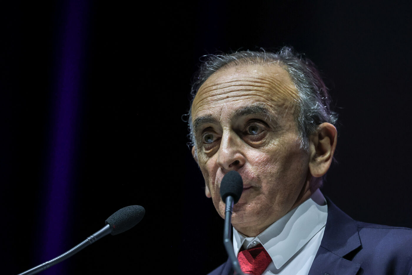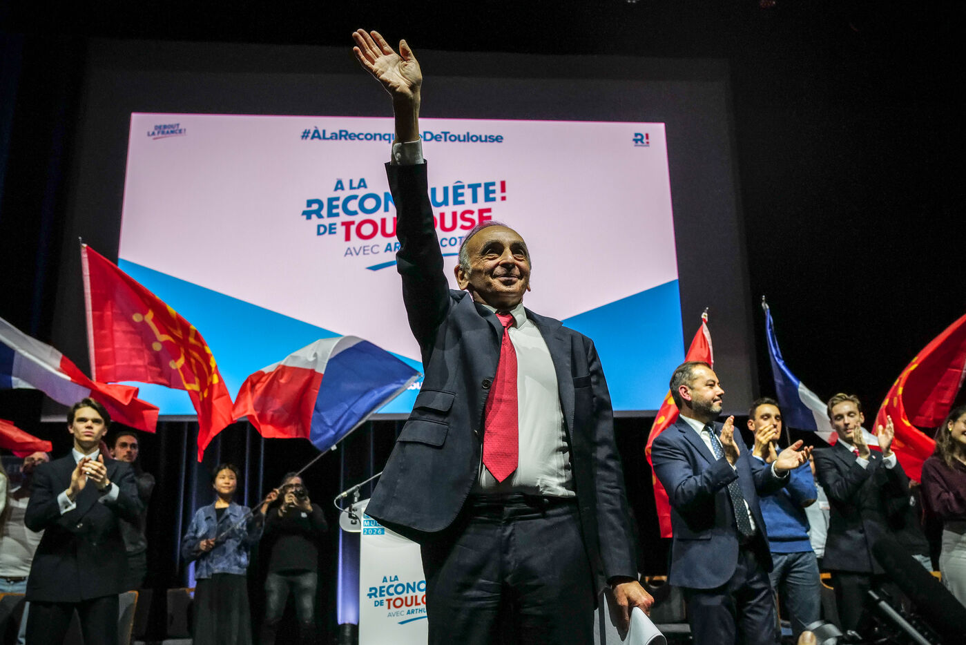 Eric Zemmour, journaliste et polemiste d extreme droite avec le candidat du parti politique Reconquete, Arthur Cottrel pour les prochaines elections municipales a Toulouse en mars 2026 pendant un meeting au centre de congres Pierre Baudis.
