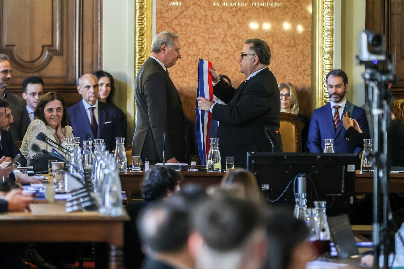 France, Toulouse, 2026-03-27. The Toulouse city council chamber on the day of the installation of the new mayor Jean-Luc Moudenc and the Toulouse city council following the last municipal elections. March