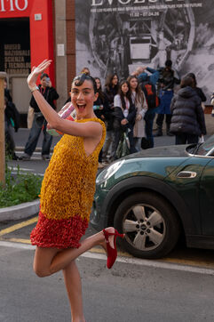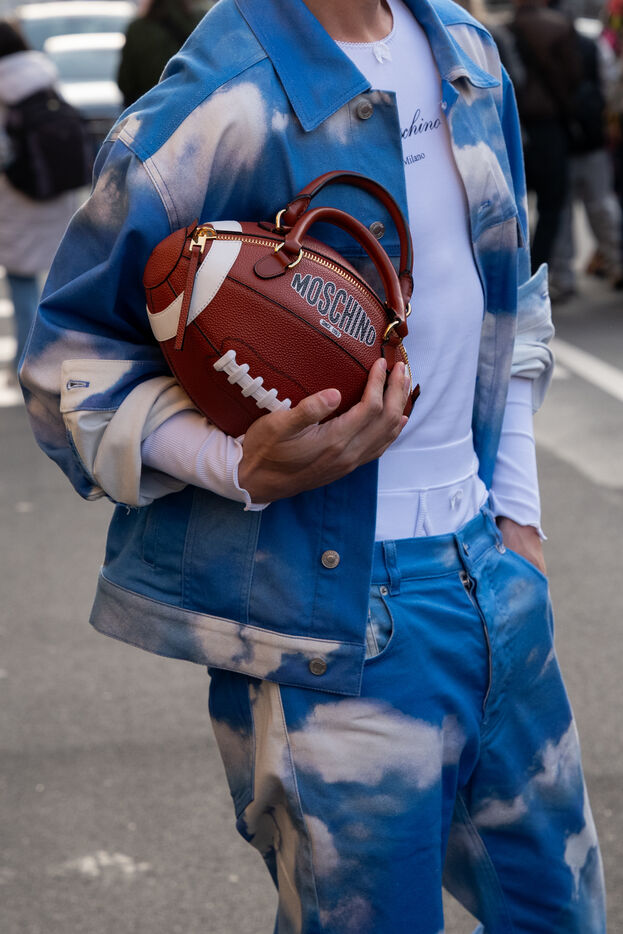 Street style photographs taken outside the Moschino show during Milan Fashion Week on February 27, 2026.