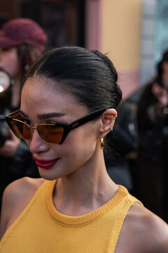 Invités, silhouettes et détails de looks captés à l’extérieur du lieu du show.