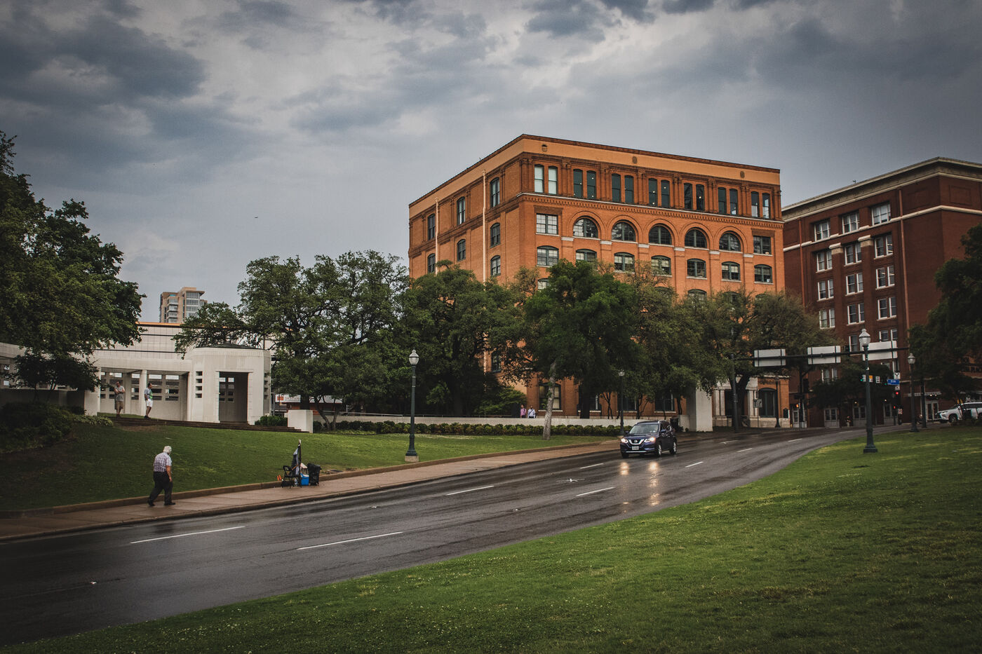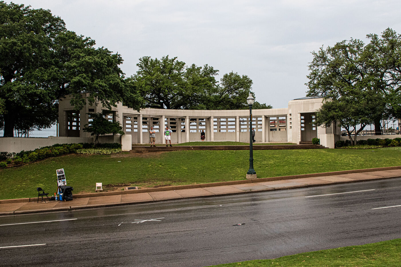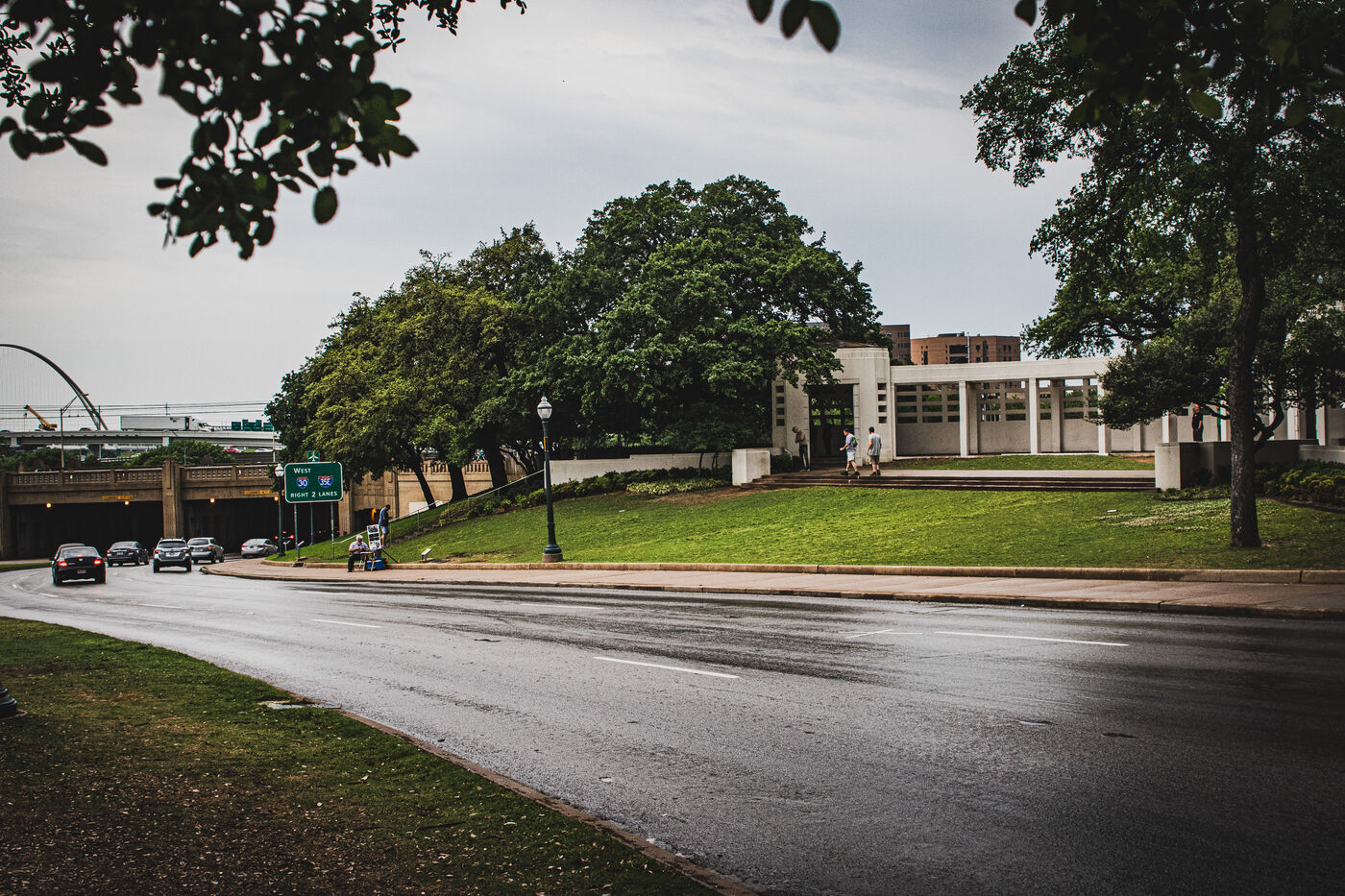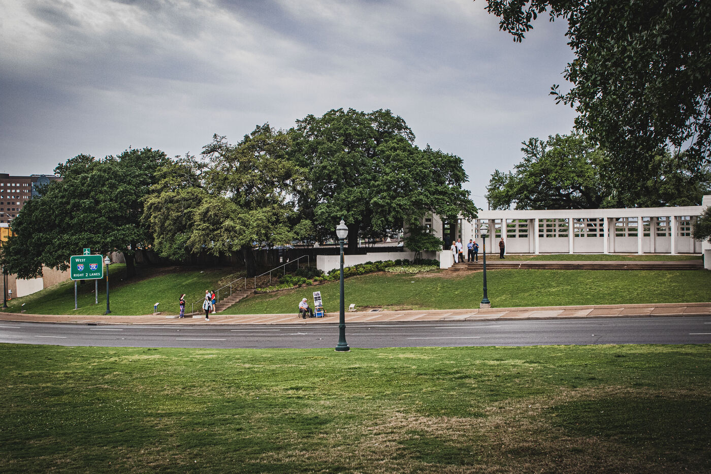 À travers cette série de photographies prises le 30 avril 2019, l’atmosphère de ce site chargé de mémoire est capturée avec précision. Depuis les hauteurs de la Reunion Tower, le regard embrasse la ville et l’endroit où tout s’est joué. Le Texas School Book Depository, aujourd’hui transformé en musée, rappelle la position présumée du tireur, Lee Harvey Oswald. À quelques mètres, une simple croix blanche sur l’asphalte marque l’endroit exact où Kennedy a été mortellement touché, tandis qu’un drapeau américain flottant sur une palissade semble veiller sur ce passé figé dans l’histoire.