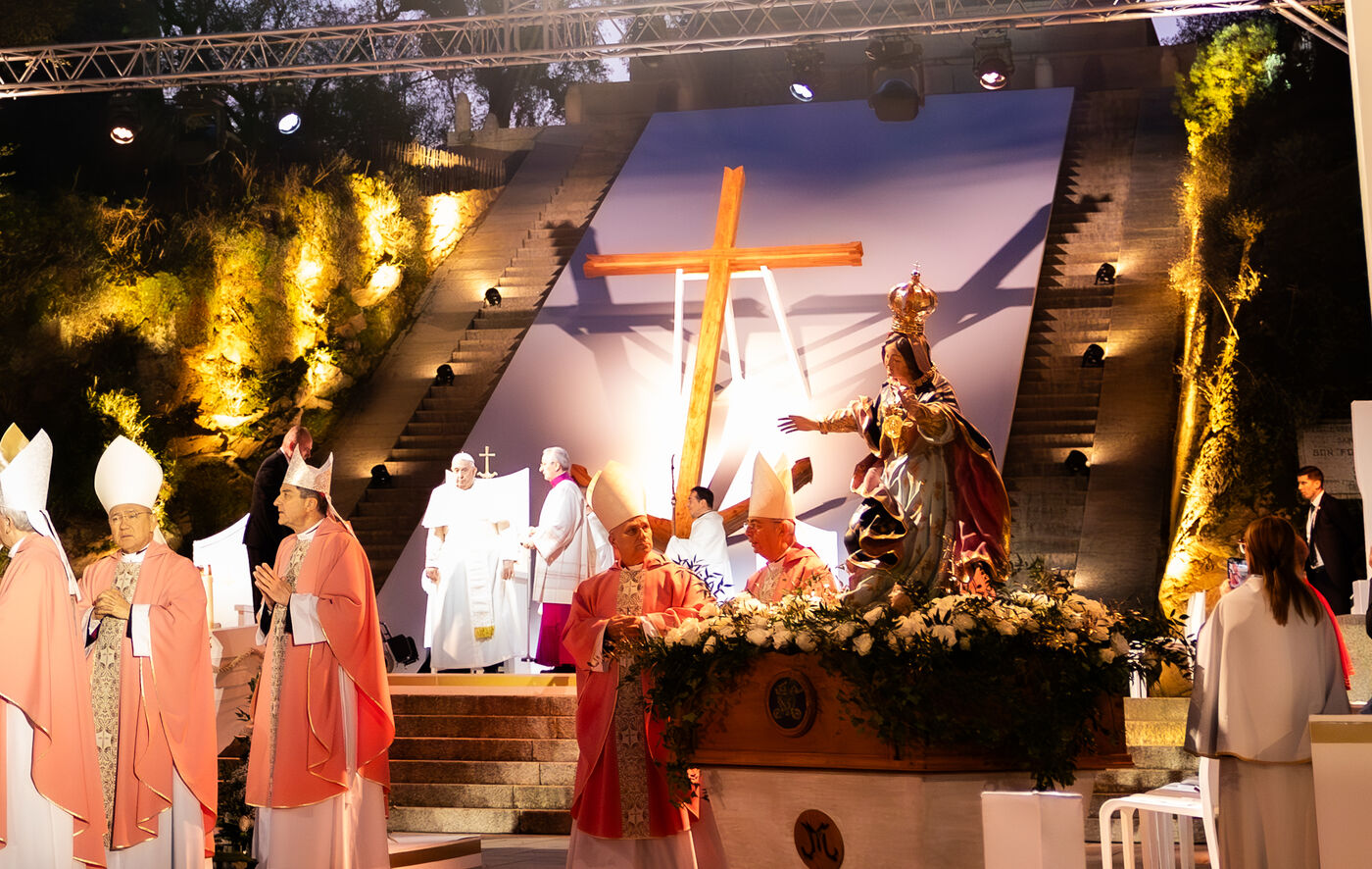 On December 15th, 2024, in Ajaccio, a moment of profound historical significance quietly unfolded before the gathered faithful, under the protective gaze of the Madonuccia. As Pope Francis concluded the ceremony, the man who would soon become Pope Leo XIV stood humbly beneath the Madonuccia, under the shadow of the cross and the word “Peace” overlooking the scene.
