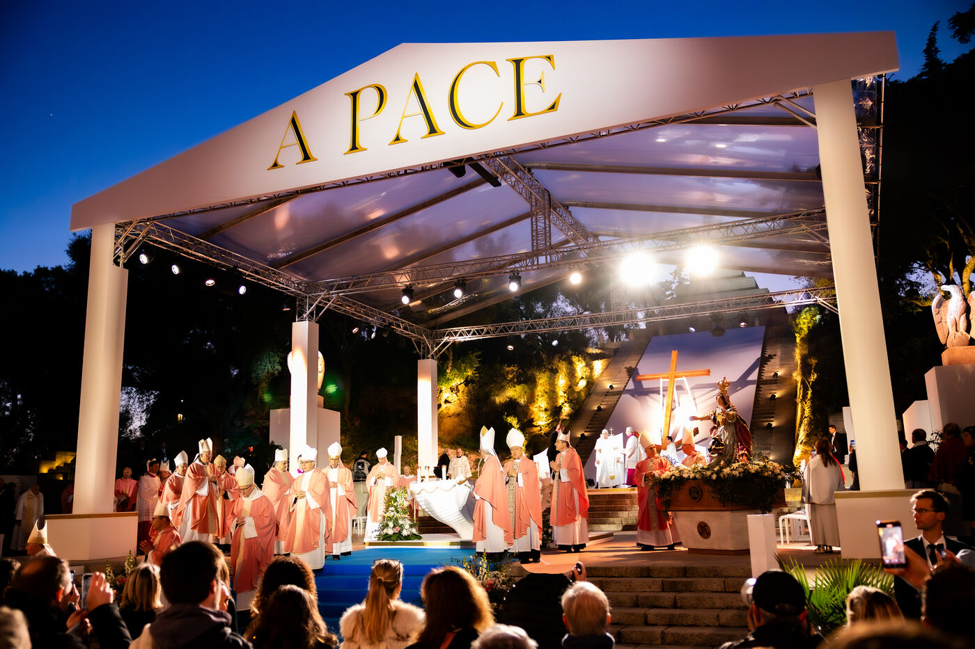 Le 15 décembre 2024, à Ajaccio, un événement d’une portée historique s’est discrètement inscrit sous les regards des fidèles et la bienveillance de la Madonuccia. Ce jour-là, alors que le Pape François concluait la cérémonie, le futur Pape Léon XIV se tenait en toute humilité sous la statue protectrice de la Madonuccia, à l’ombre de la croix et du mot “Paix” qui surplombaient la scène.