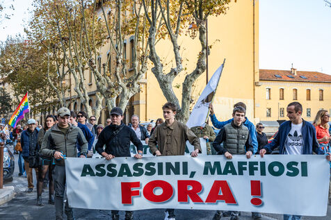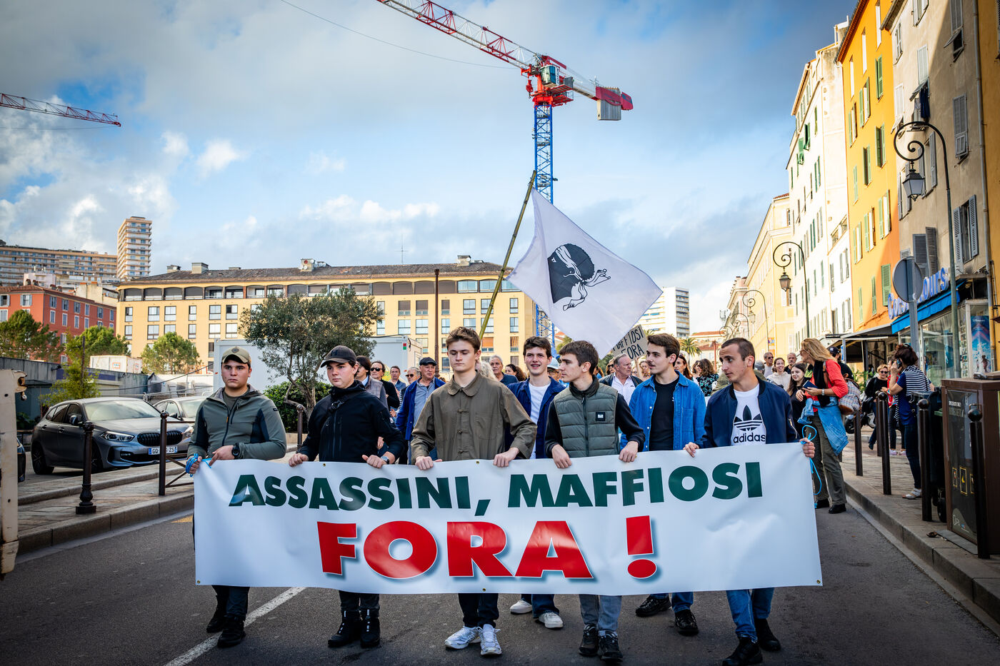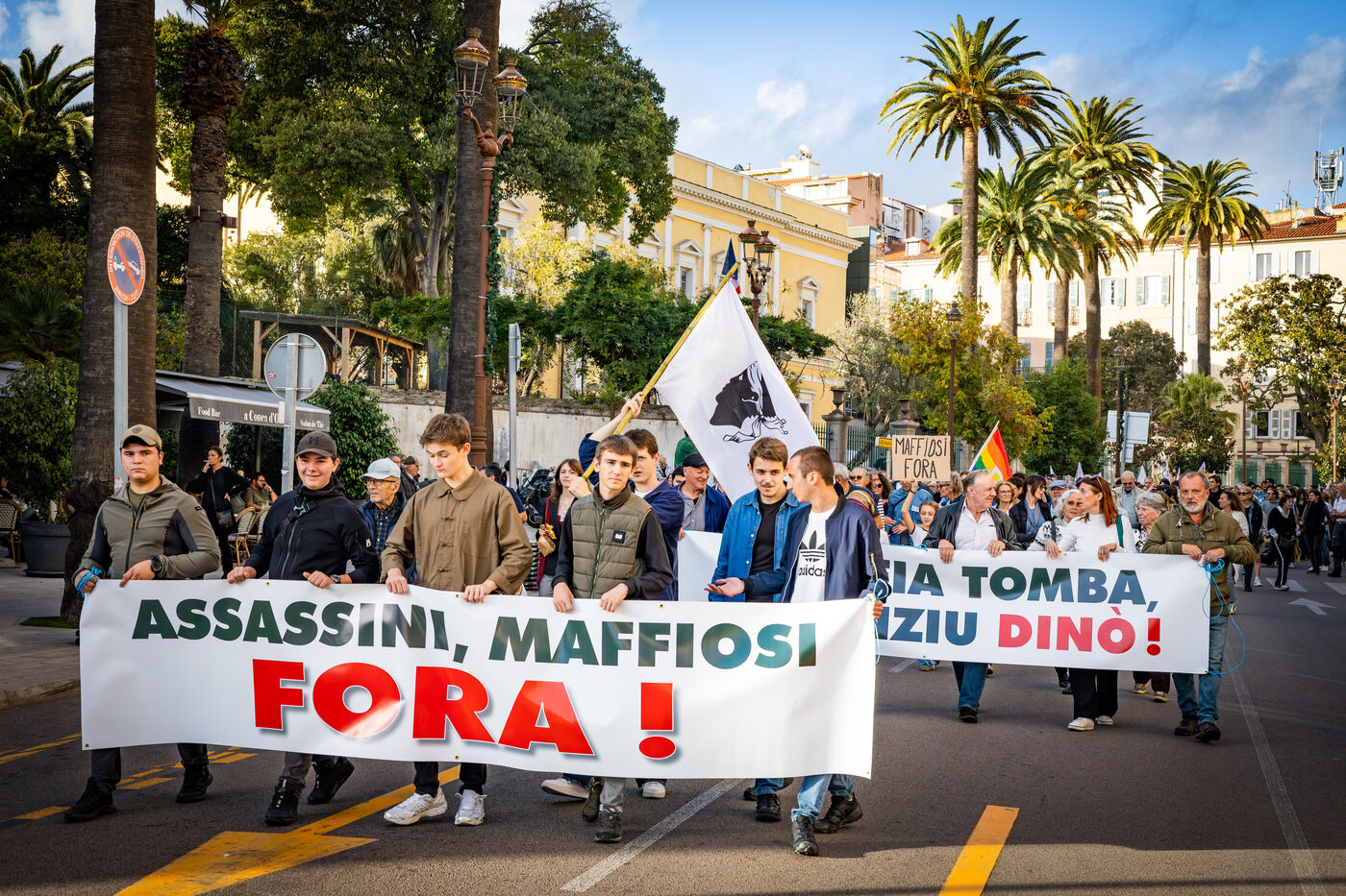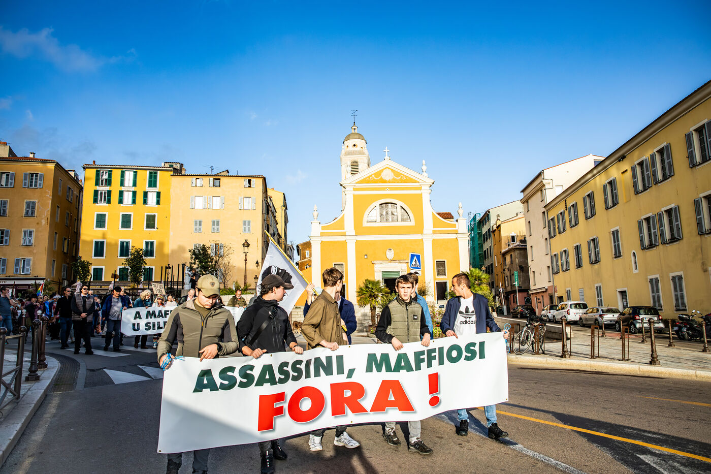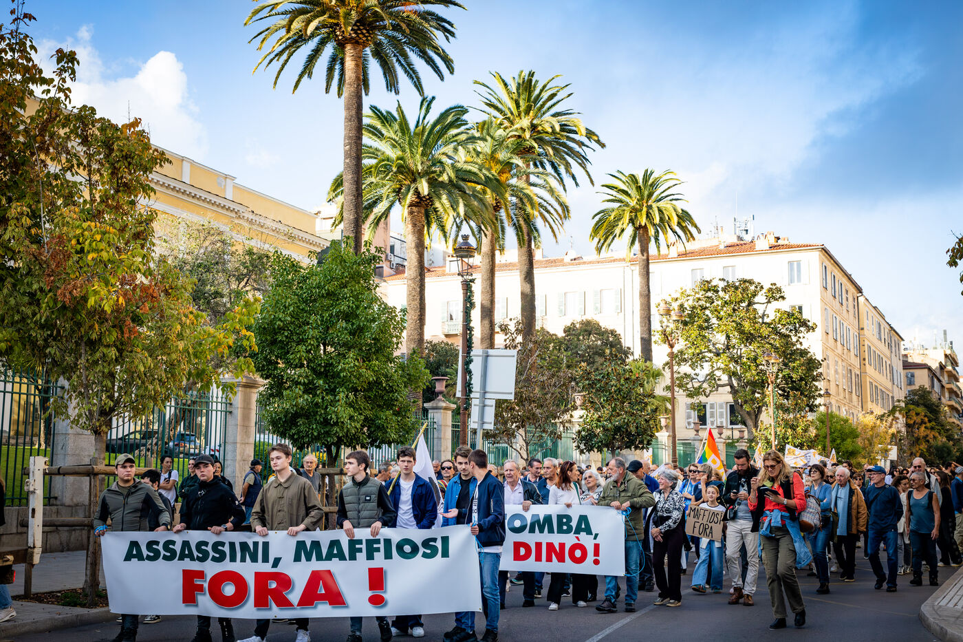 À Ajaccio, plusieurs centaines de personnes se sont de nouveau rassemblées pour dénoncer l’emprise croissante des réseaux criminels sur l’île. Le cortège, composé de citoyens, de familles, d’élus et de membres d’associations, a avancé depuis la gare derrière les grandes banderoles « Assassini, maffiosi, fora ! ». De nombreux portraits de Maxime Susini, militant assassiné en 2019, et de Pierre Alessandri, syndicaliste assassiné en 2025, étaient brandis par les manifestants, devenant les symboles visibles de la lutte contre les violences mafieuses.