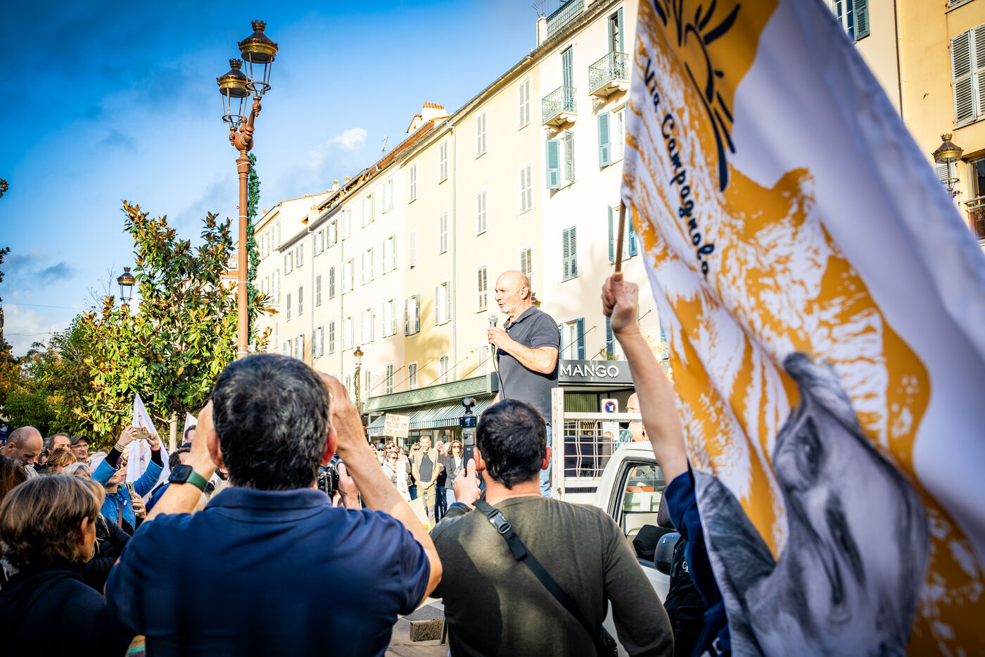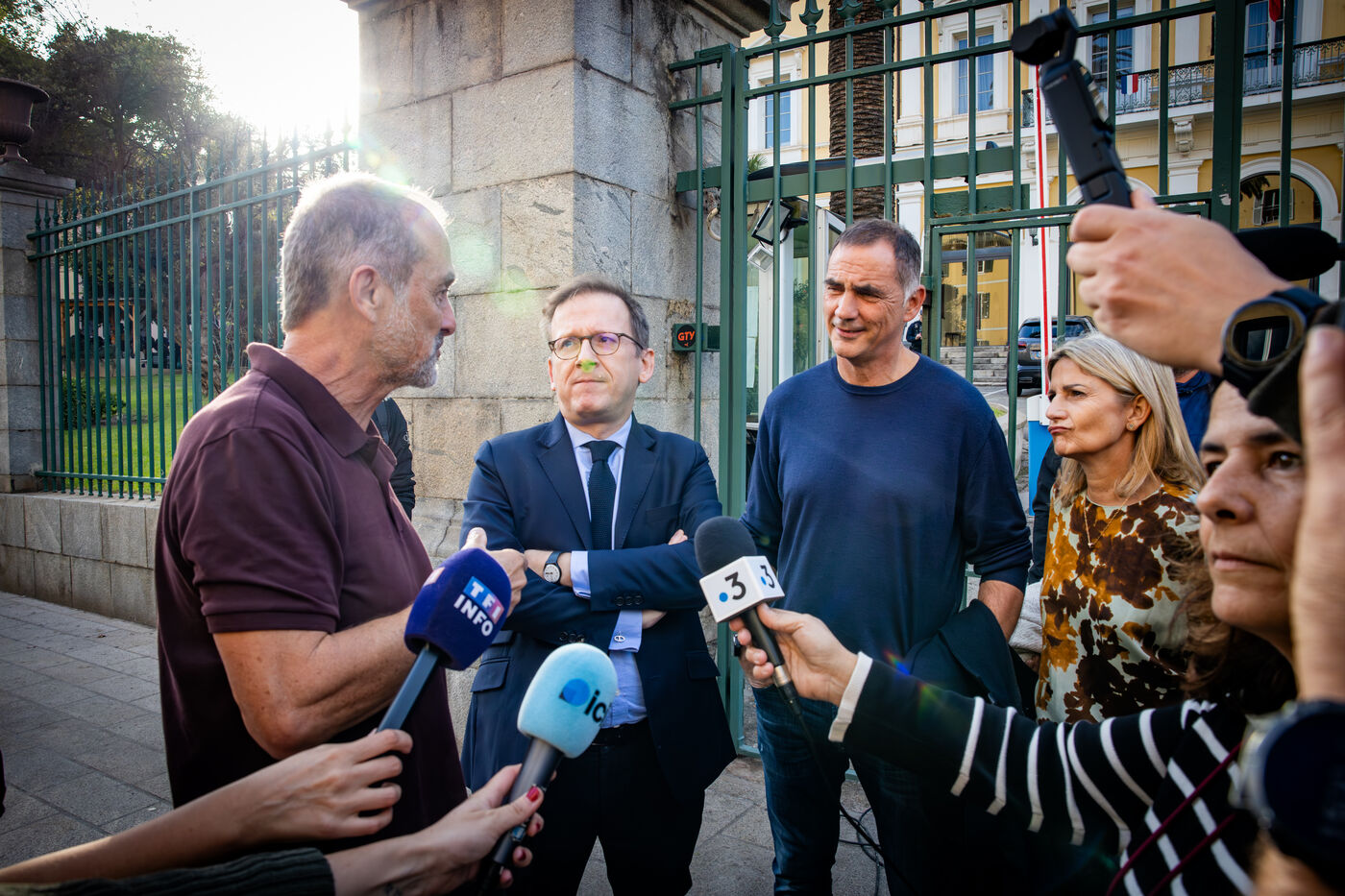 À ce moment-là, le préfet de Corse, Éric Jalon, est sorti à la rencontre du collectif : un échange public et direct s’est tenu entre lui et Jean-Toussaint Plasenzotti, sous l’œil des médias présents, illustrant la tension et les attentes autour d’une réponse institutionnelle plus ferme.