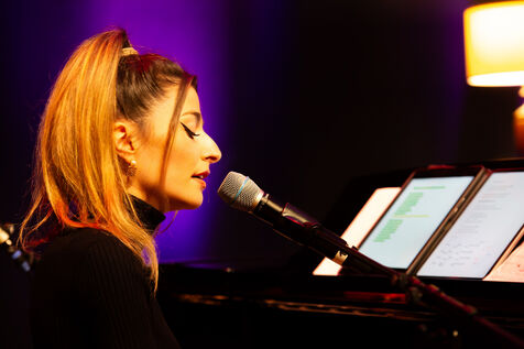 These images capture the suspended moments in which time appears to narrow around the artist: a glance, a breath, a trace of color on the skin, the vibration of a voice carried by the piano.