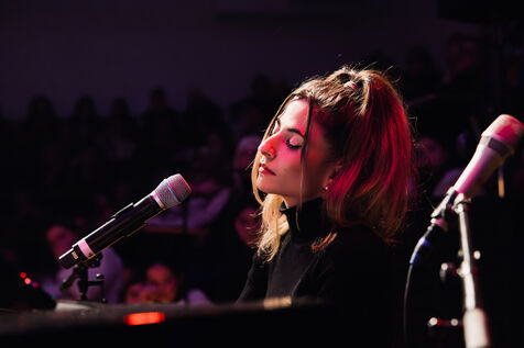 This four-image series retraces the moments of the final performance. Seated at the piano and illuminated by understated lighting, Vernis Rouge reveals a presence that is both calm and concentrated. Each note seems to settle into the silence of the room, each gesture following the rhythm of her breath and her song.
