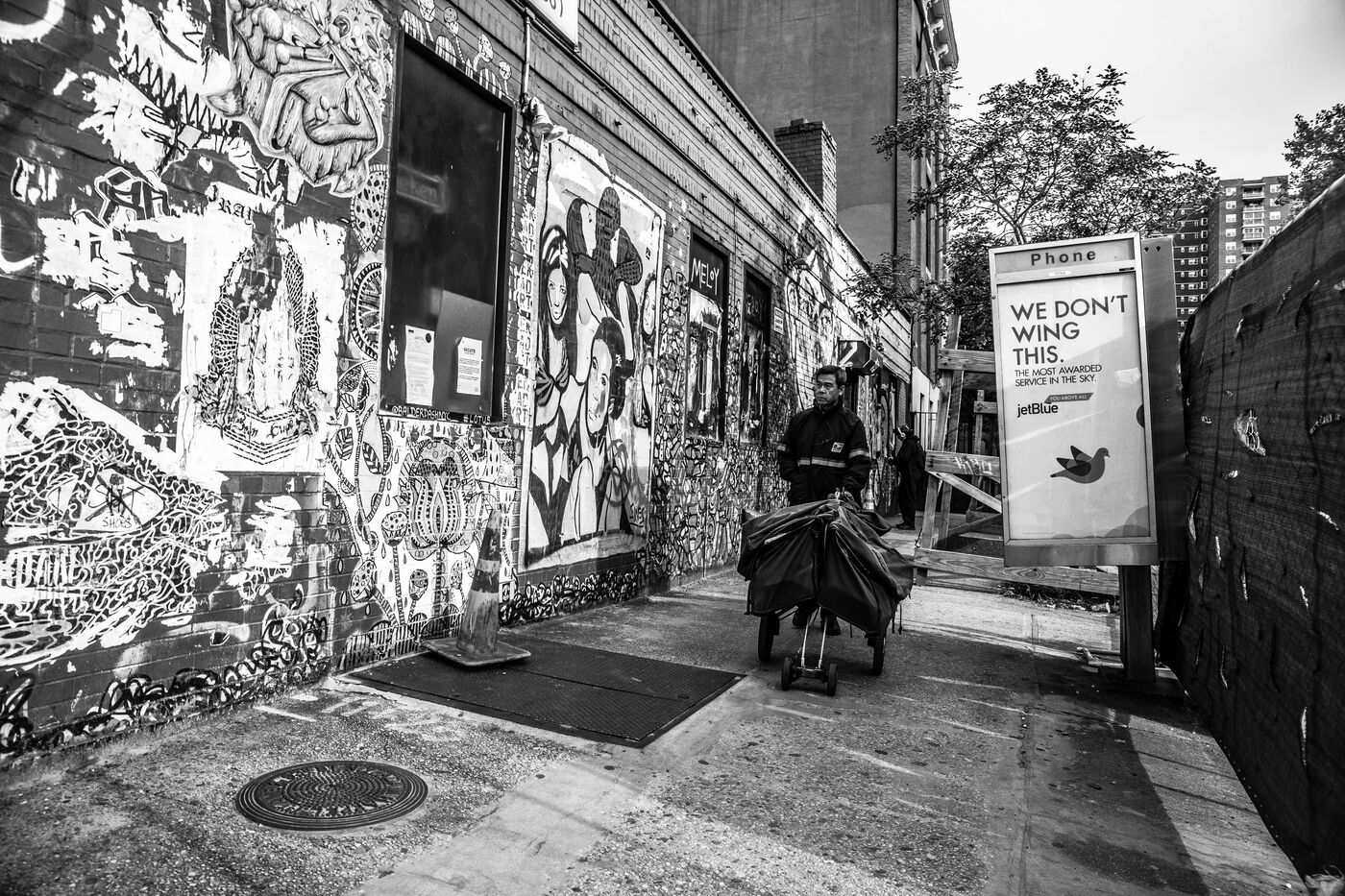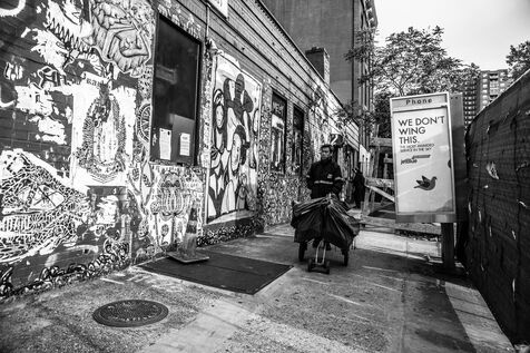 Casque sur les oreilles, hip-hop new-yorkais en fond sonore et appareil photo à la main, ces images sont réalisées en immersion, au rythme de la rue, dans une tentative de capter le souffle brut de la ville.