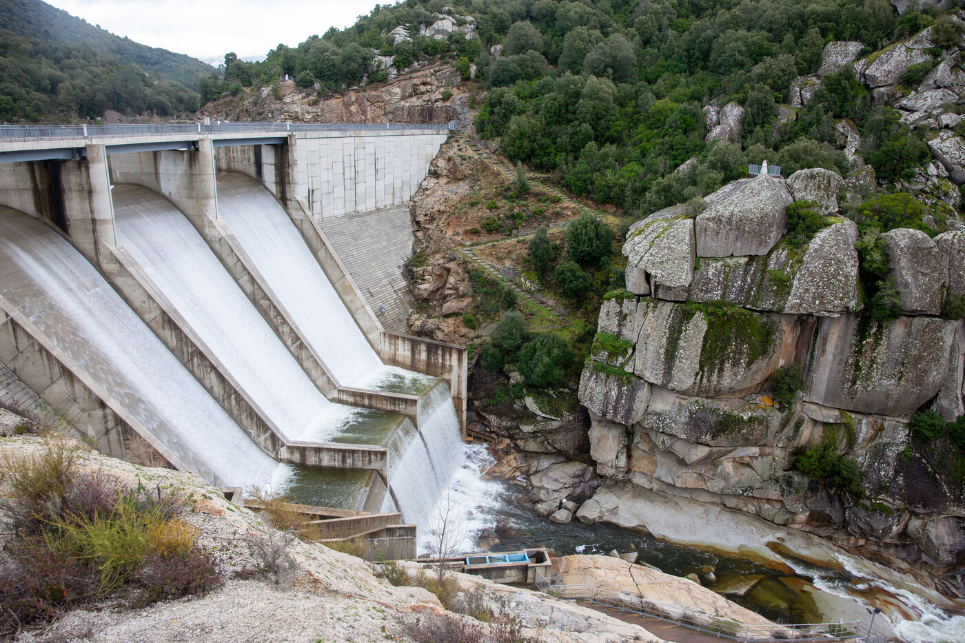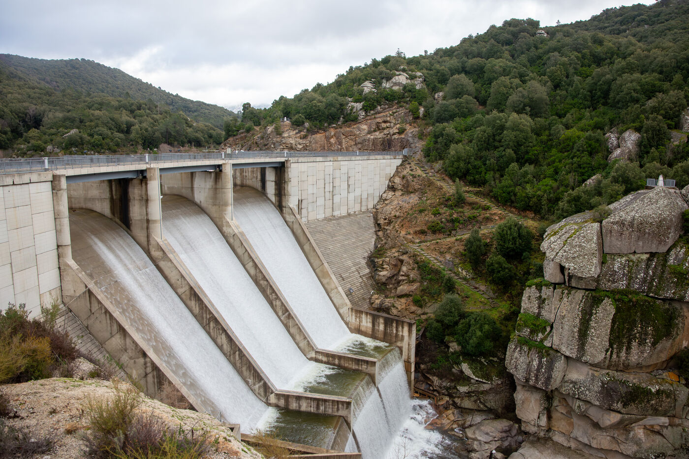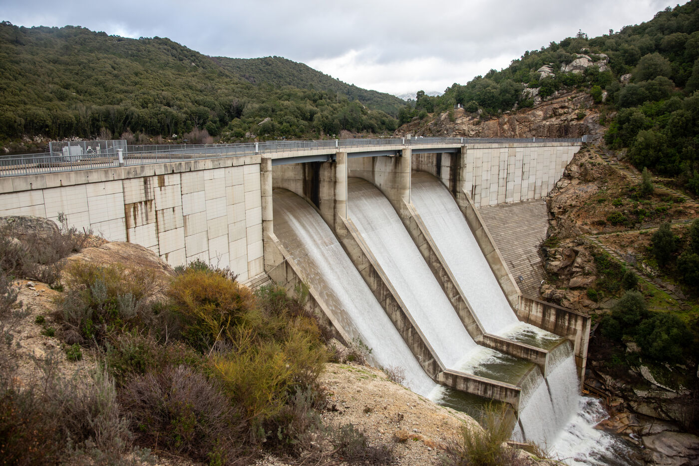 The Rizzanese is the fourth major EDF hydroelectric development in Corsica. Built as a gravity dam, the structure rests on foundations reaching 60 meters in thickness and rises to a height of 40 meters, ensuring both stability and long-term safety.