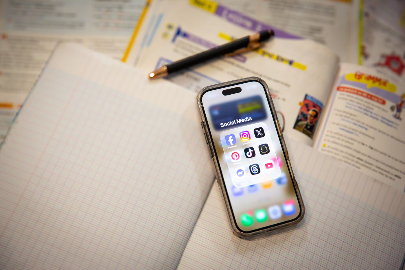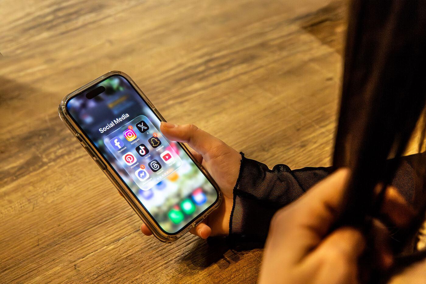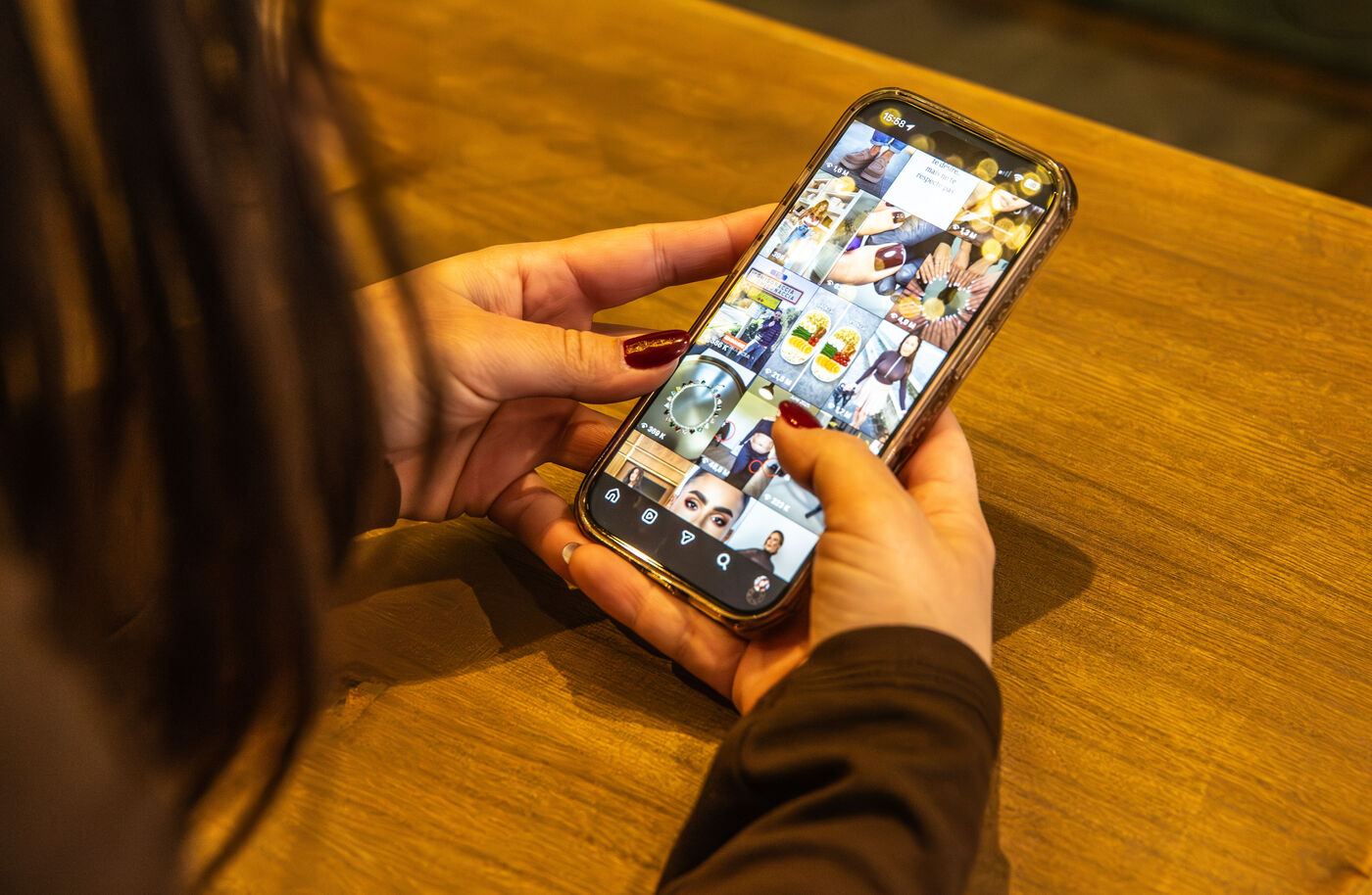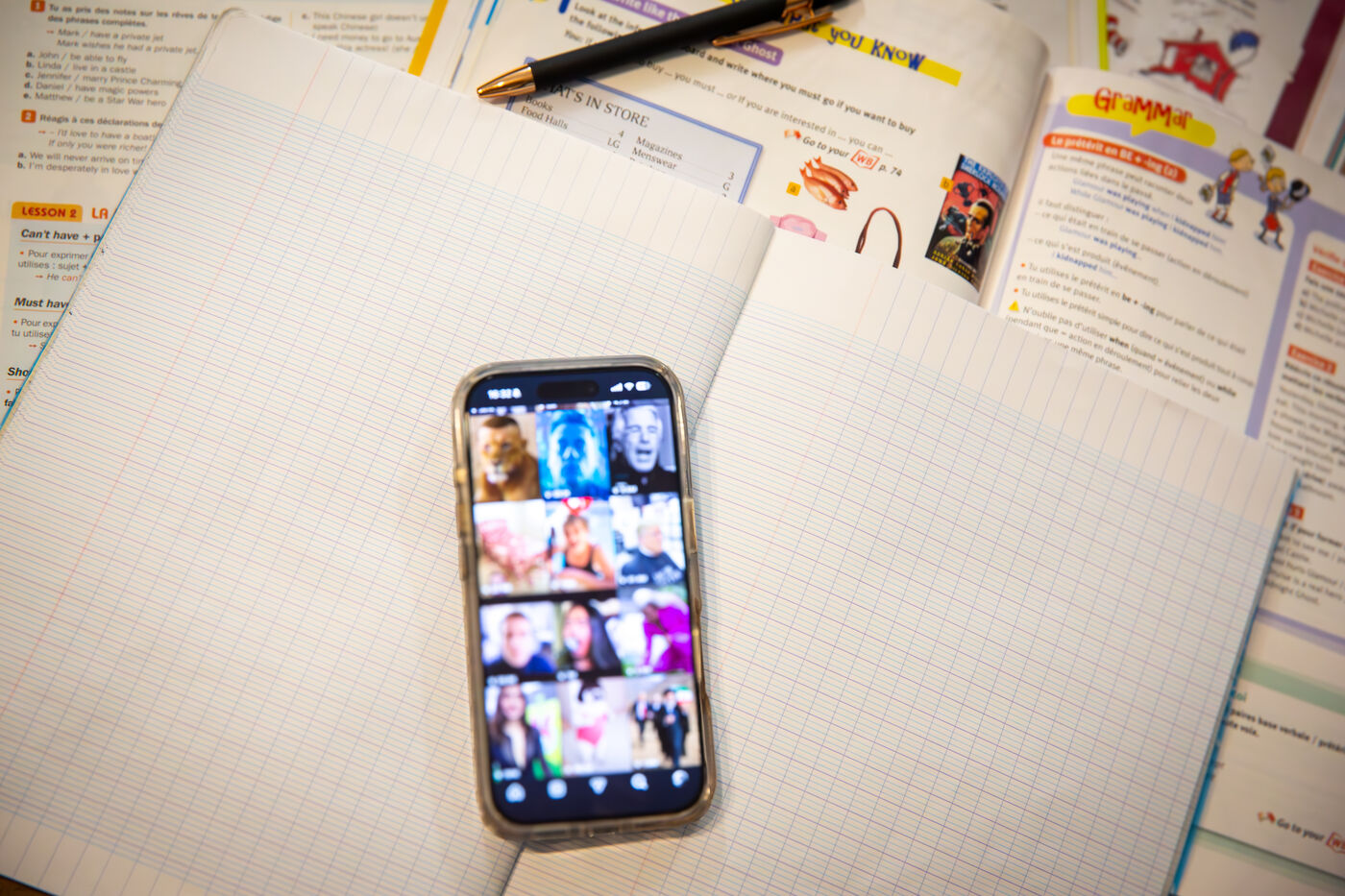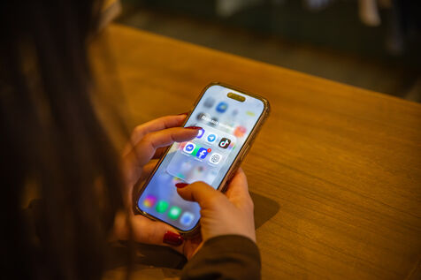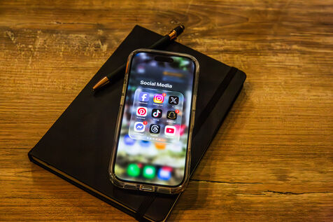 Cette série d’images montre des applications de réseaux sociaux affichées sur l’écran d’un smartphone, seul ou associé à un ordinateur portable, dans un contexte de travail ou d’usage quotidien. Elle illustre les pratiques numériques actuelles, la consultation de plateformes sociales, la création de contenu ainsi que l’interconnexion entre appareils mobiles et outils informatiques.
