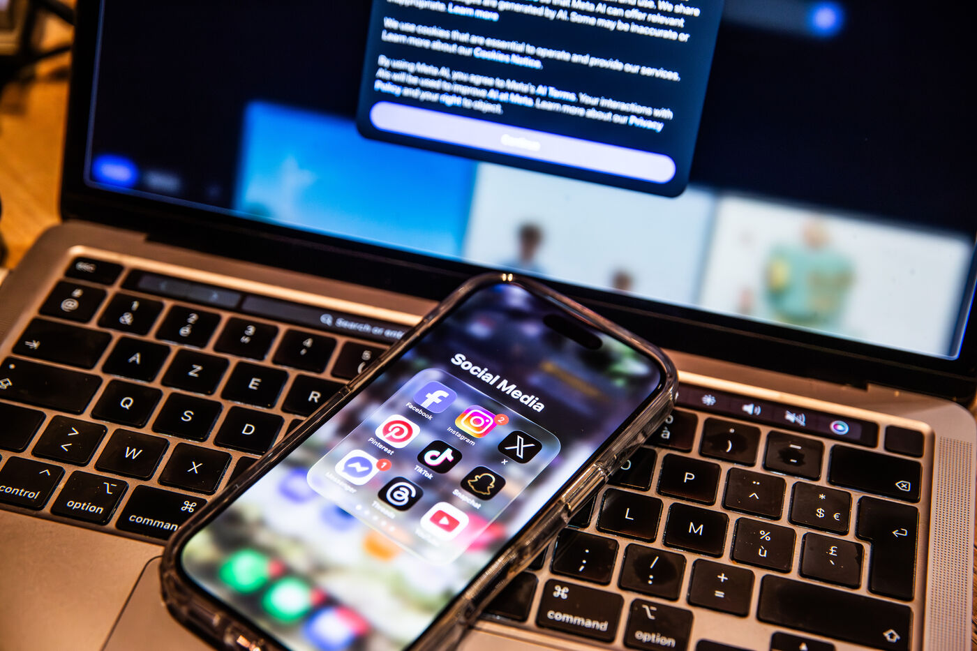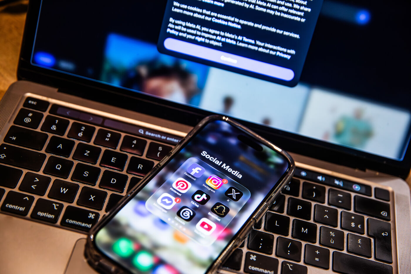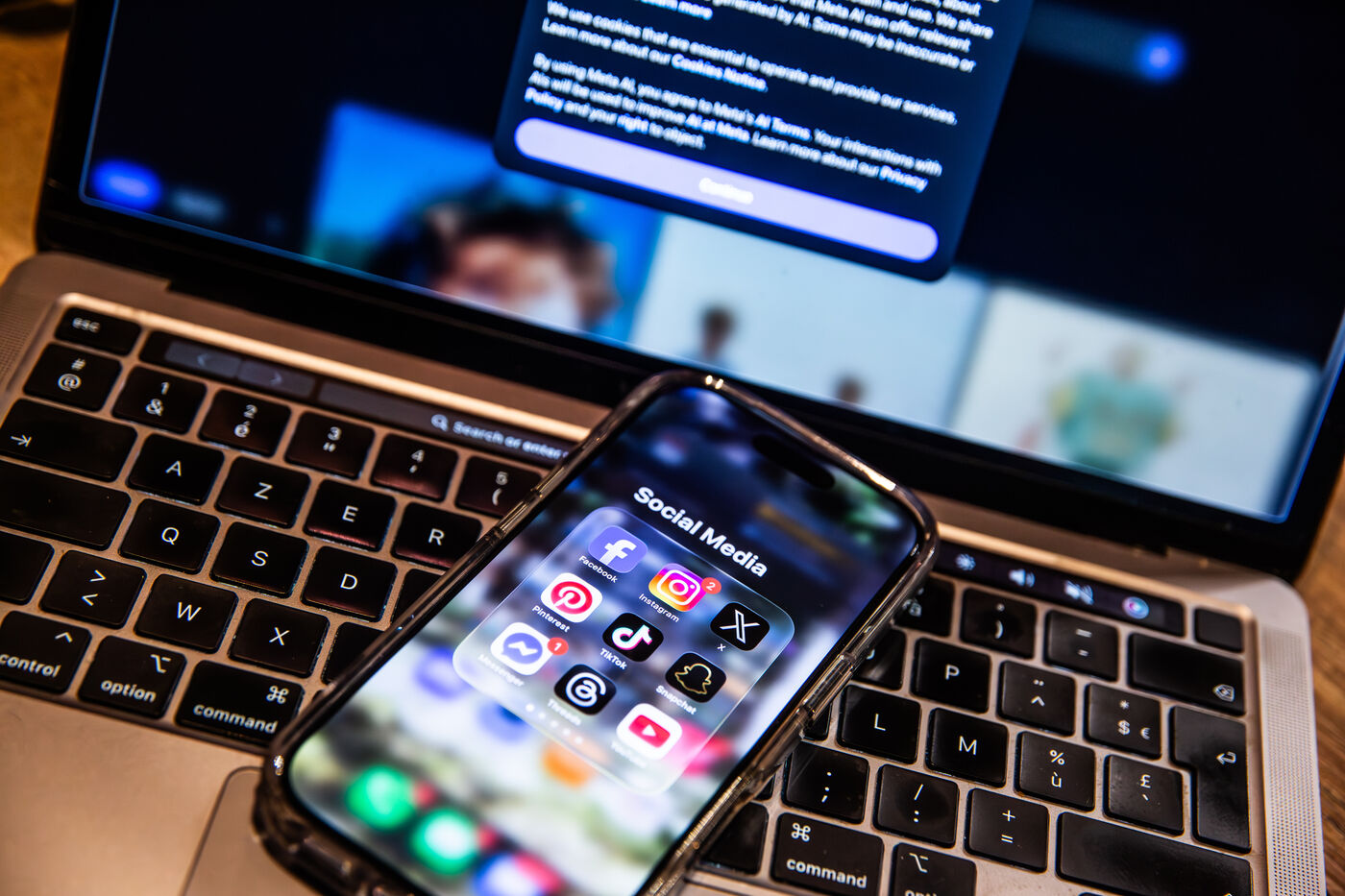 These visuals, deliberately generic and not linked to a specific event, may accompany stories related to social media, digital communication, remote work, online influence, misinformation, digital addiction or more broadly to societal issues connected to digital platforms.