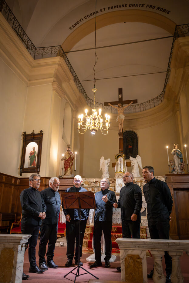Created in 1995 by Jean Paul Poletti, the Sartene Men's Choir brings together six singers who explore a musical universe rooted in tradition while shaped by contemporary inspiration. Drawing on classical forms and techniques, the ensemble has built a unique identity within the Corsican musical landscape.