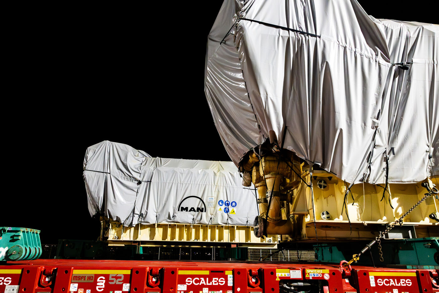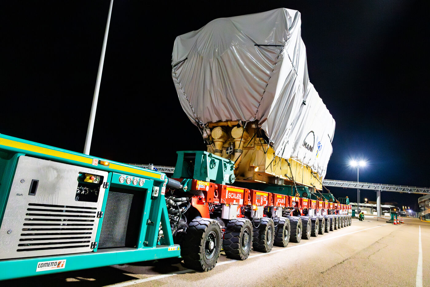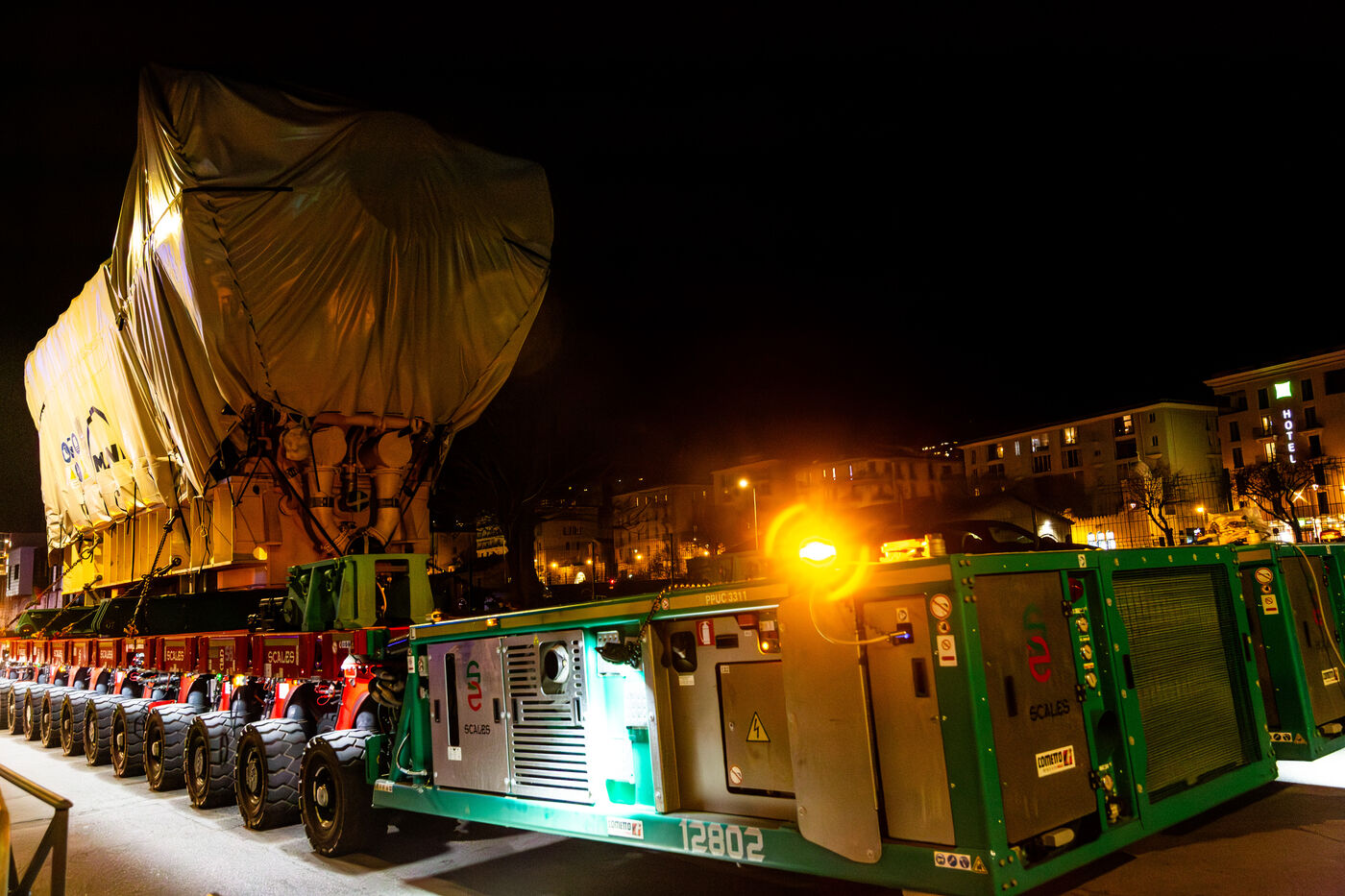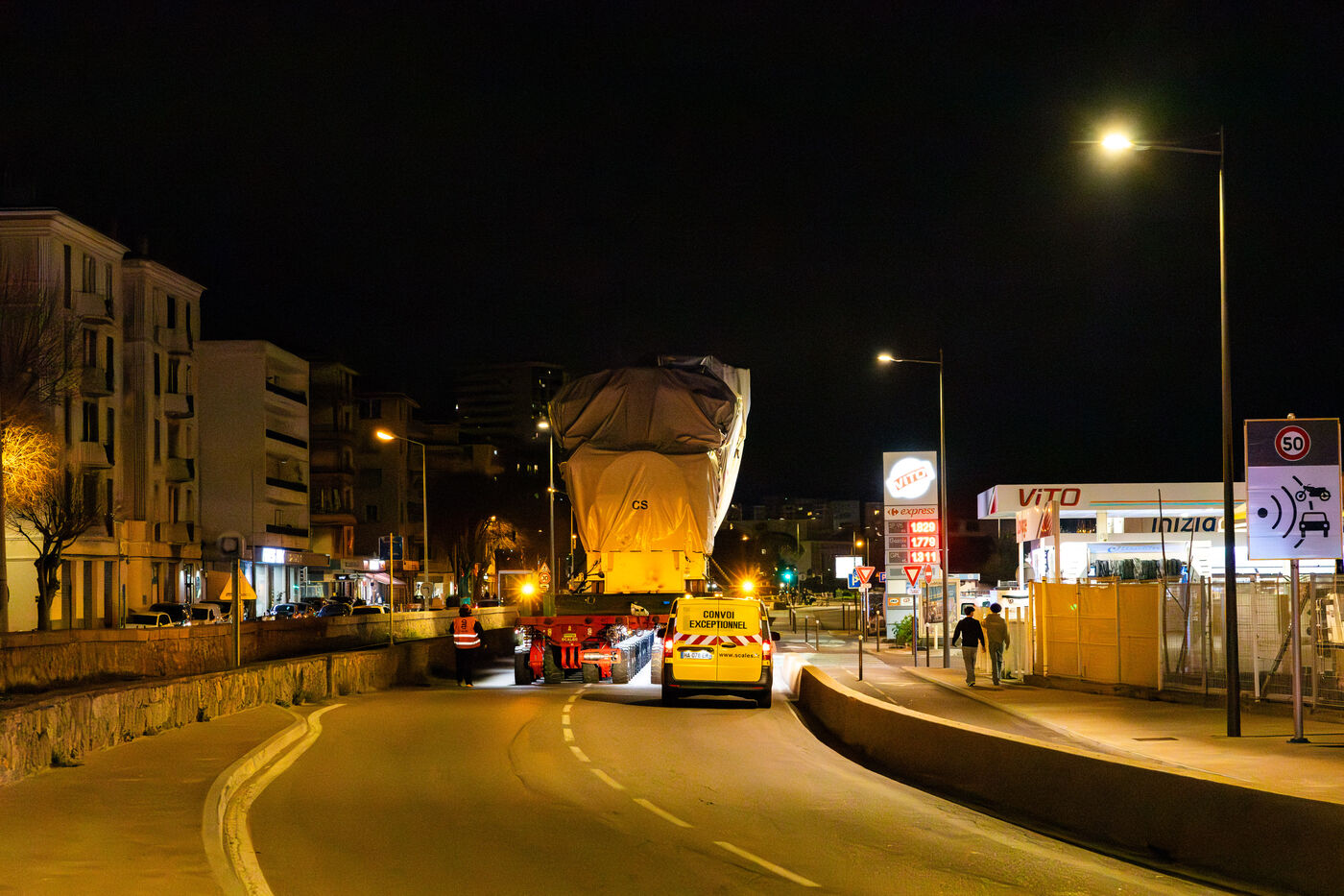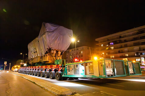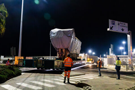 Eight industrial turbines weighing approximately 325 tons each were transported at night from the port of Ajaccio to the Ricanto site as part of the construction of the future bioenergy power plant operated by EDF Production Electrique Insulaire.