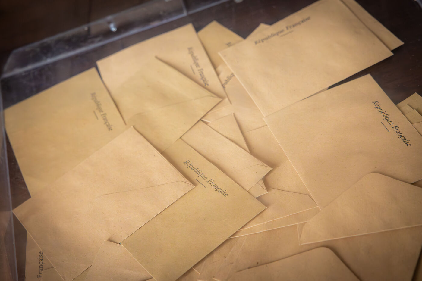 Produced without reference to a specific election event, these images depict ballot envelopes inside voting boxes, documents related to the electoral code and symbolic elements of French political life. They offer a neutral representation of the voting act within the republican framework.
