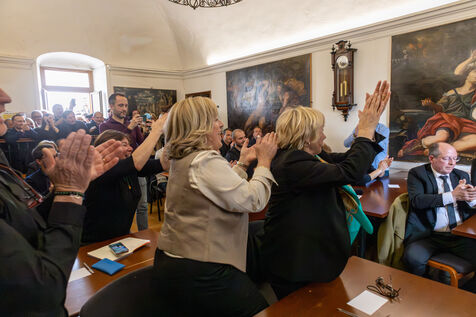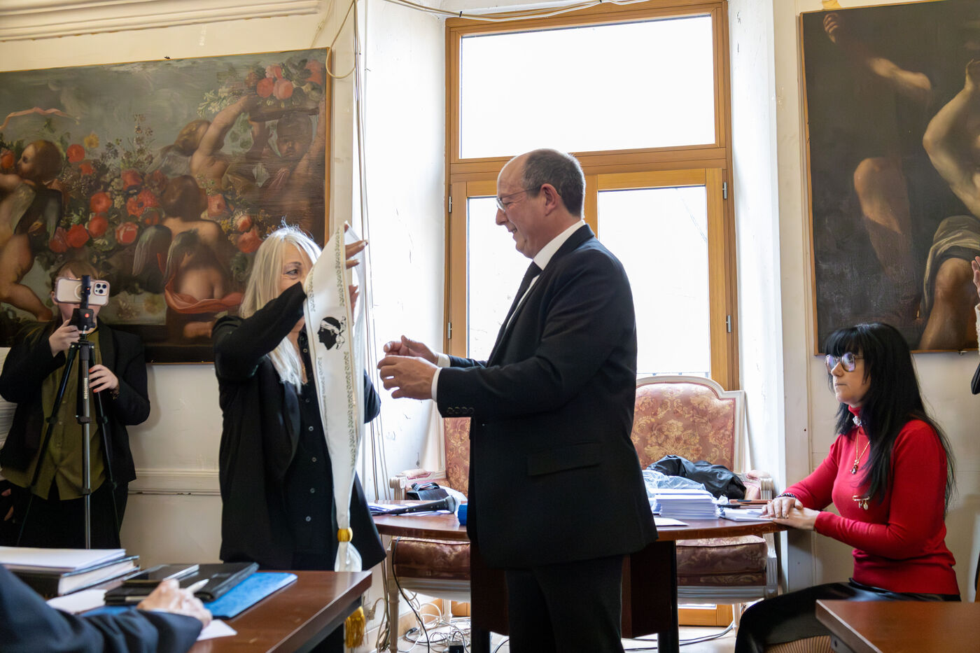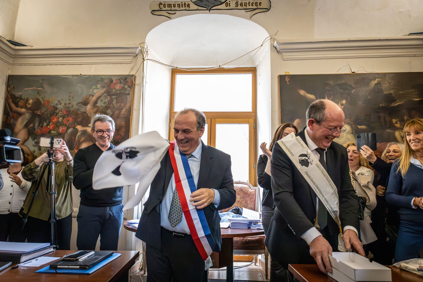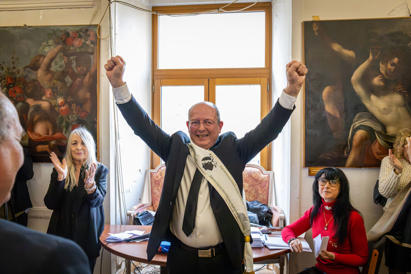 After the election of the deputy mayors, the ceremony concluded inside the town hall with the performance of the Corsican anthem Dio vi salvi Regina.