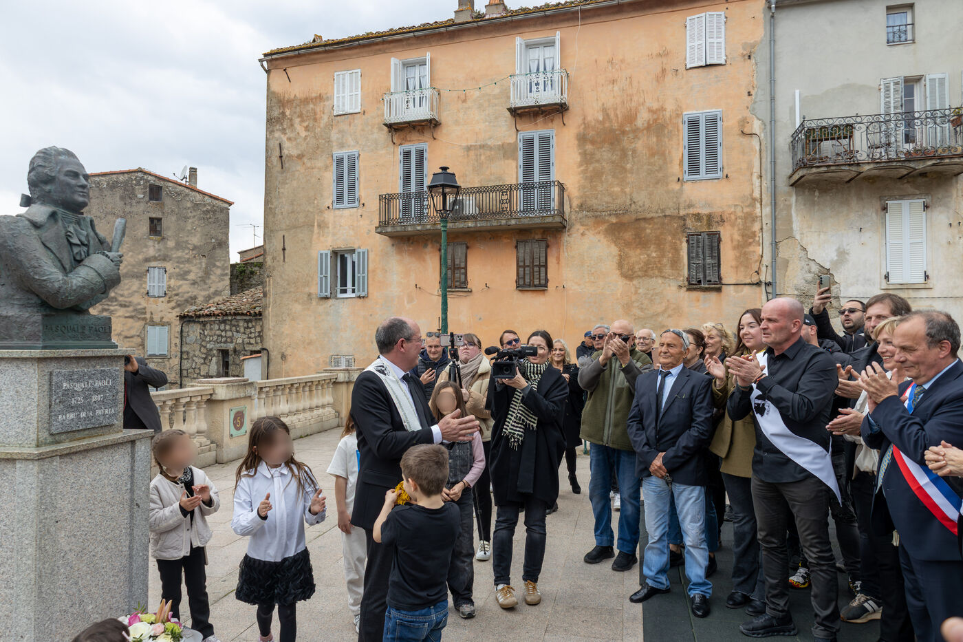 The newly elected mayor and his municipal team then moved to the square below the town hall where a crowd of residents had gathered. Paul Felix Benedetti addressed his supporters before a wreath laying ceremony took place at the war memorial and at the bust of Pasquale Paoli.
