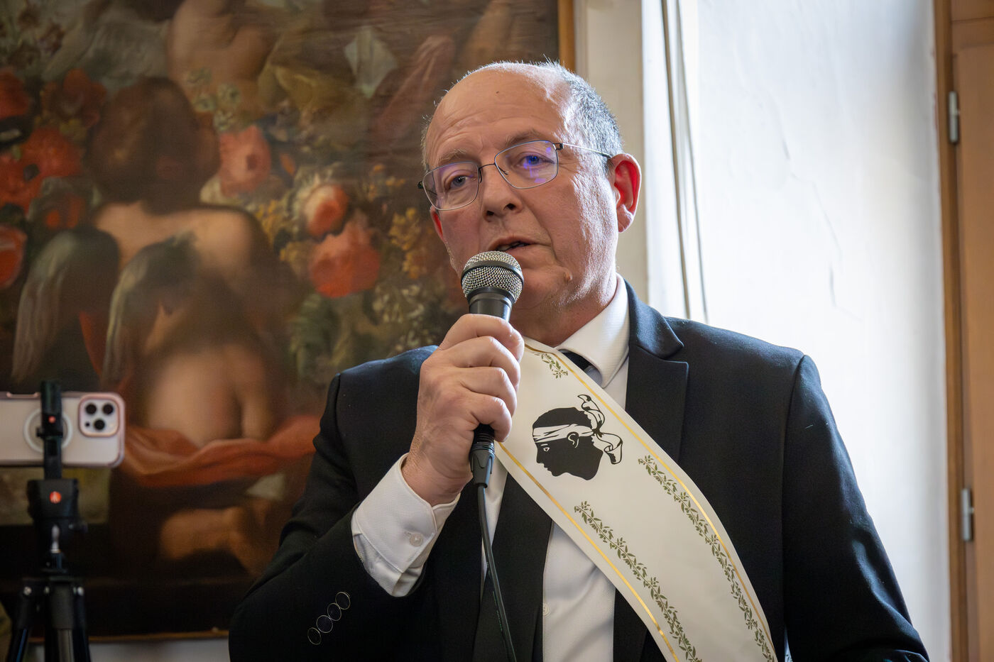 During the session, elected officials wore the French tricolor sash, symbol of the Republic, while some also wore a sash bearing the Corsican Moor head emblem, symbol of the Corsican flag, highlighting the identity dimension of the new municipal team.