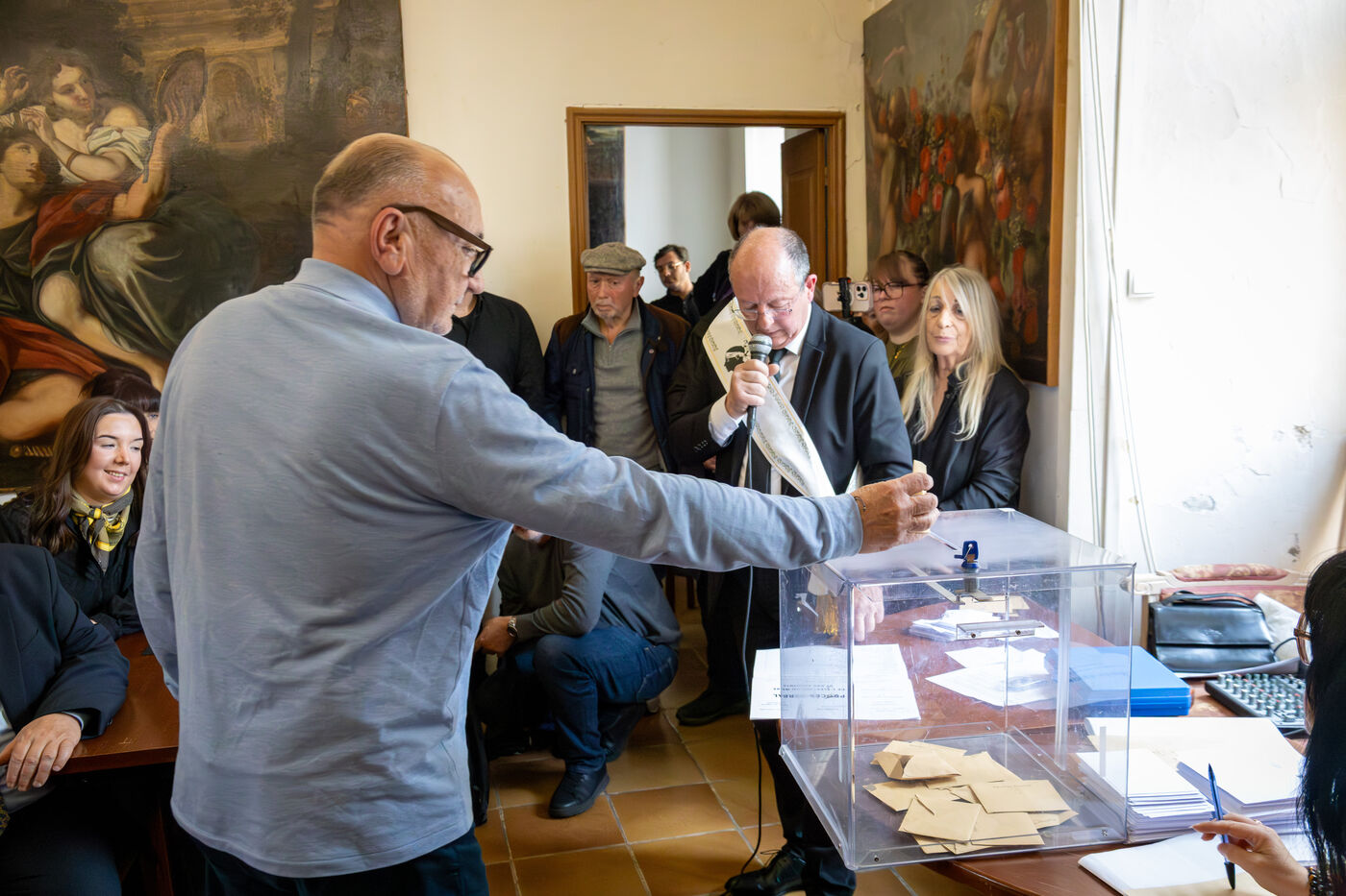 During the inauguration session, the Sartene municipal council proceeded with the election of the mayor followed by the election of deputy mayors through a formal process including secret ballots, vote counting and the proclamation of results. Paul Felix Benedetti was officially installed in office, succeeding outgoing mayor Bertrand d Ortoli.