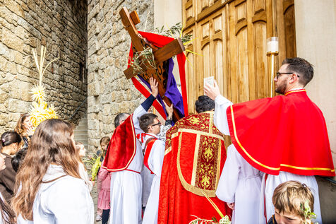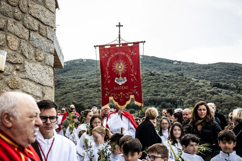 Upon arrival on the chapel forecourt, a large crowd gathered as Abbe Olivier Culioli led the blessing of the palm fronds, a central ritual of Palm Sunday symbolising the entry of Jesus into Jerusalem. The priest, assisted by members of the confraternity, then celebrated Mass in front of the chapel.