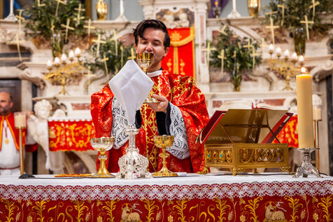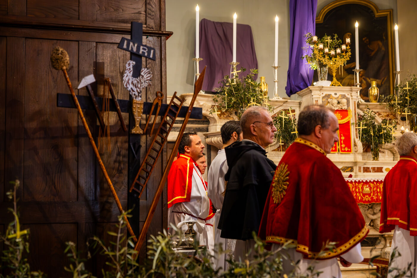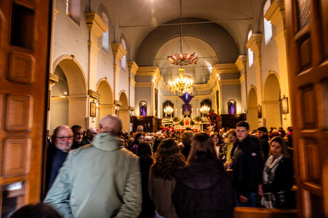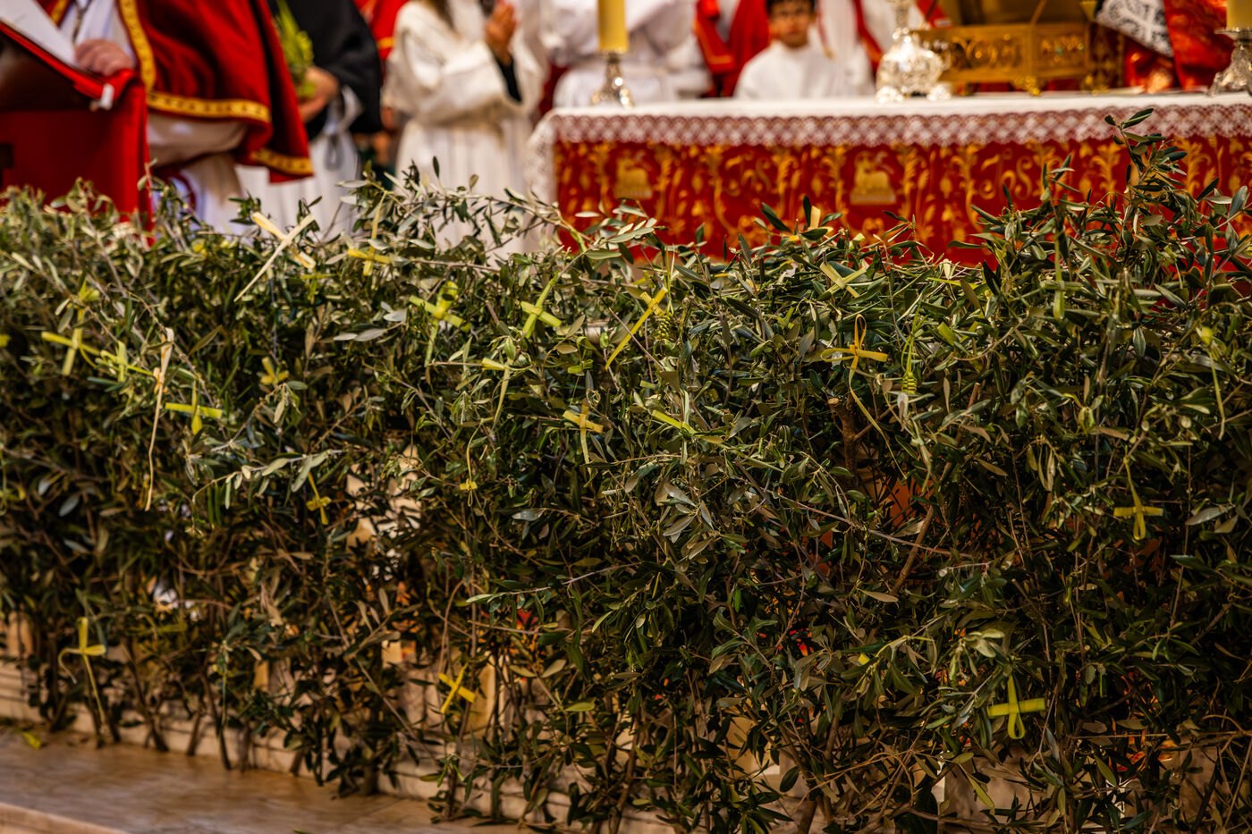 Following the ceremony, the procession returned to Santa Maria Assunta church, where the faithful entered for the continuation of the liturgy. Inside, olive branches adorned the altar while members of the confraternity took part in the service, reading religious texts and assisting the priest during communion.