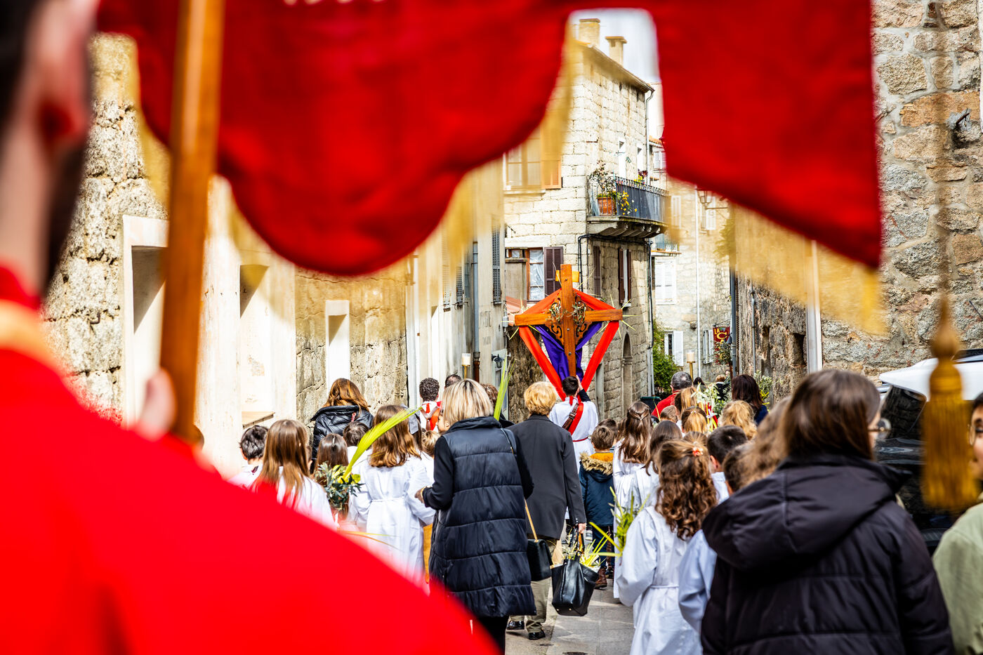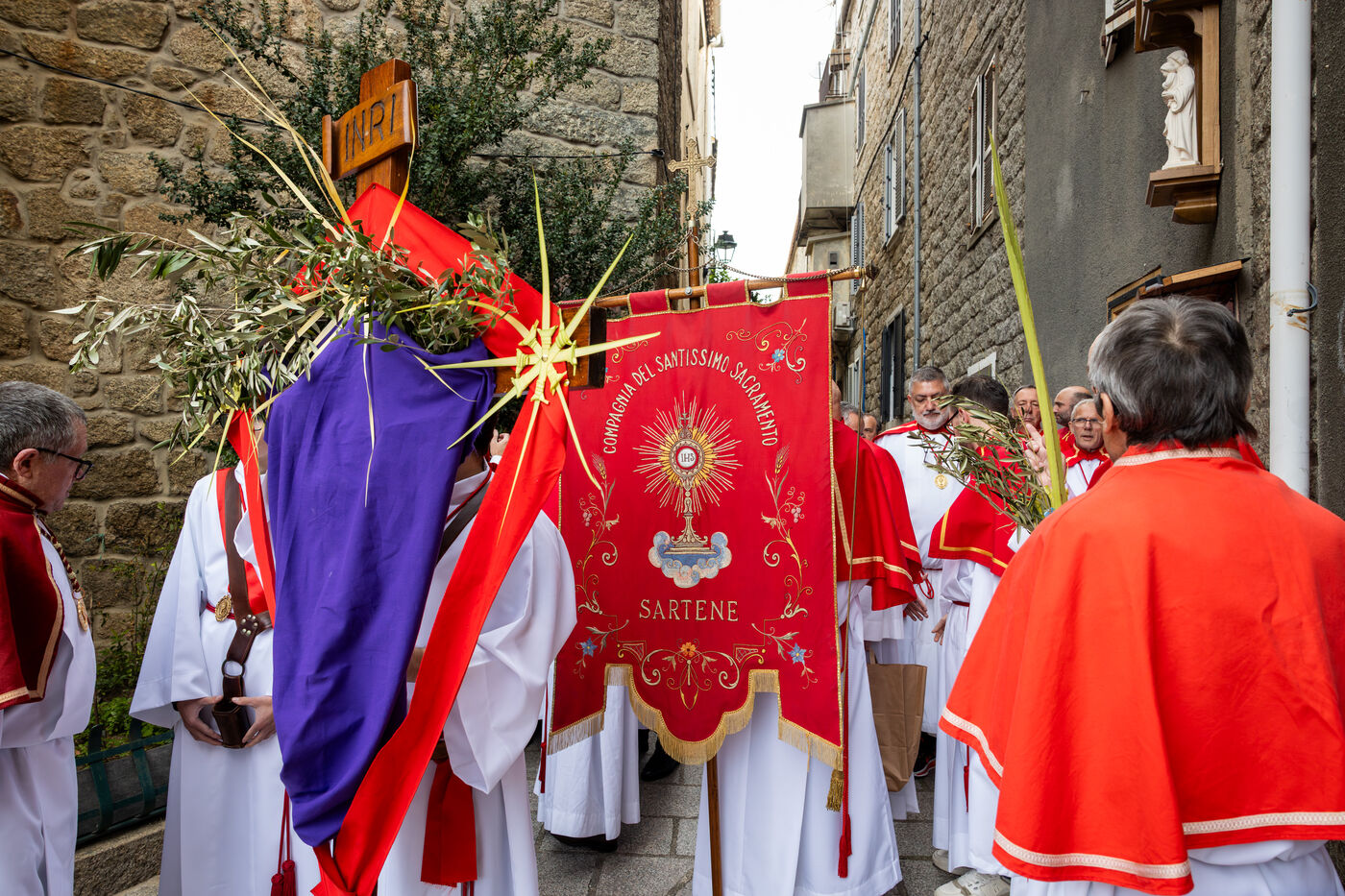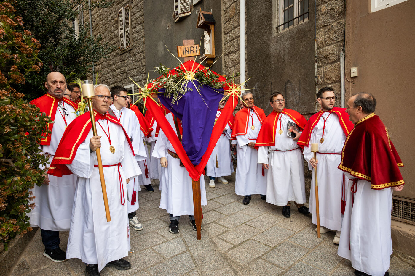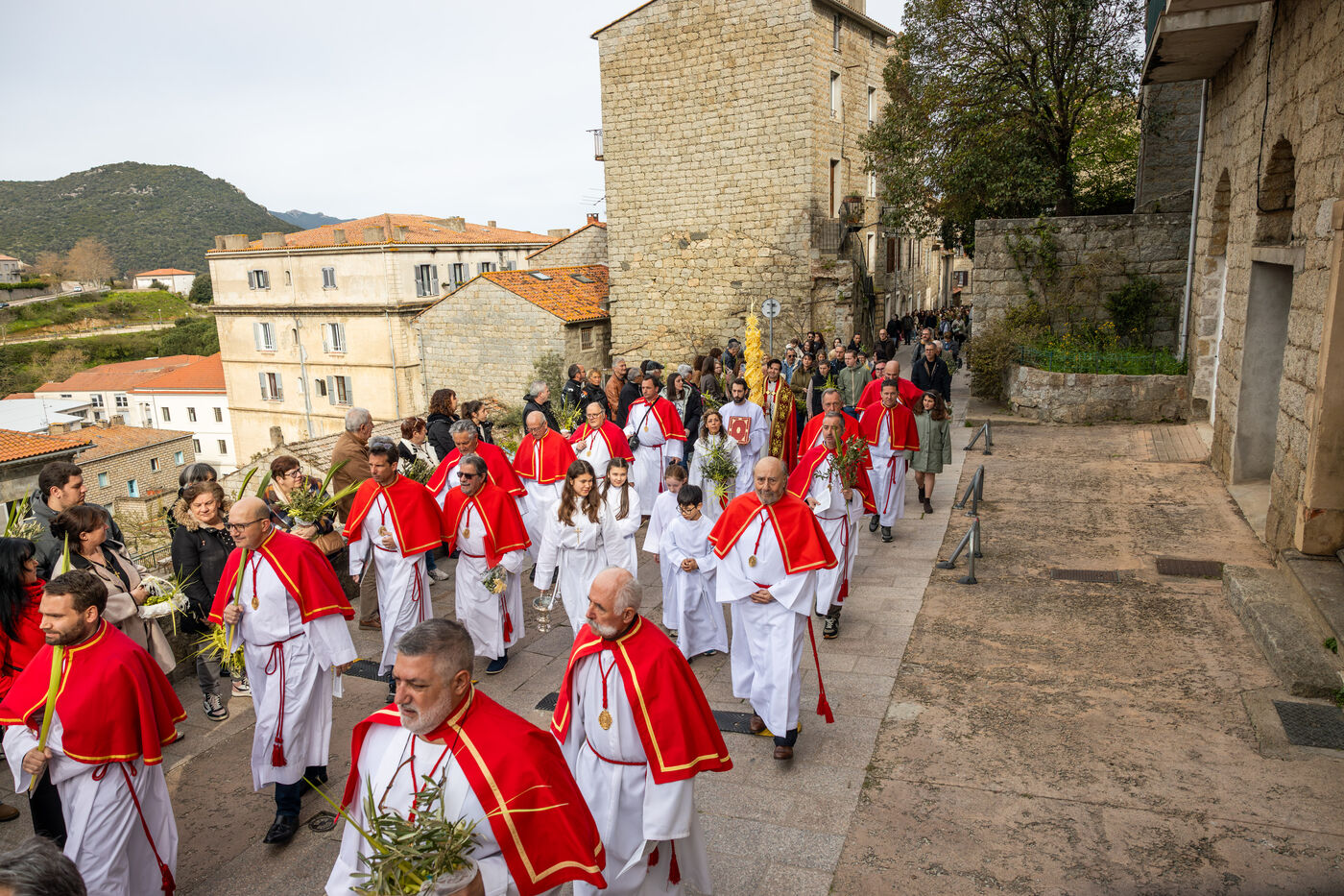 In Sartene, in southern Corsica, Palm Sunday celebrations brought together confraternity members, clergy and residents in a deeply rooted religious tradition marking the beginning of Holy Week.