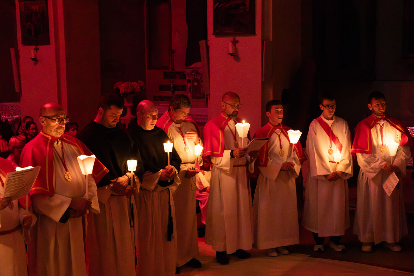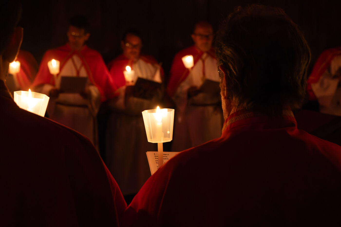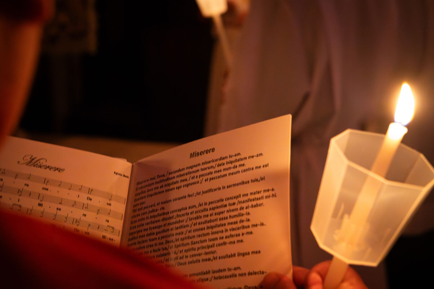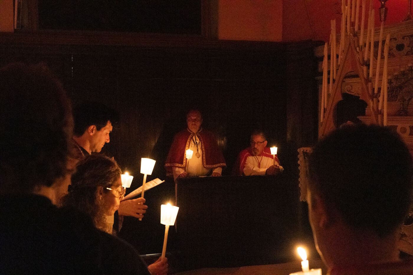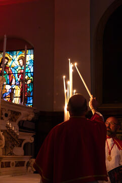 Au fil de l’office, les cierges sont éteints un à un, plongeant peu à peu l’église dans l’obscurité. Ce rituel, issu d’une tradition catholique ancienne, symbolise l’abandon, le deuil et l’attente de la crucifixion. Le silence est seulement rythmé par les prières, les chants et les déplacements des fidèles réunis dans le recueillement.