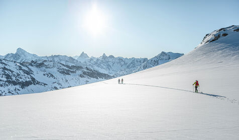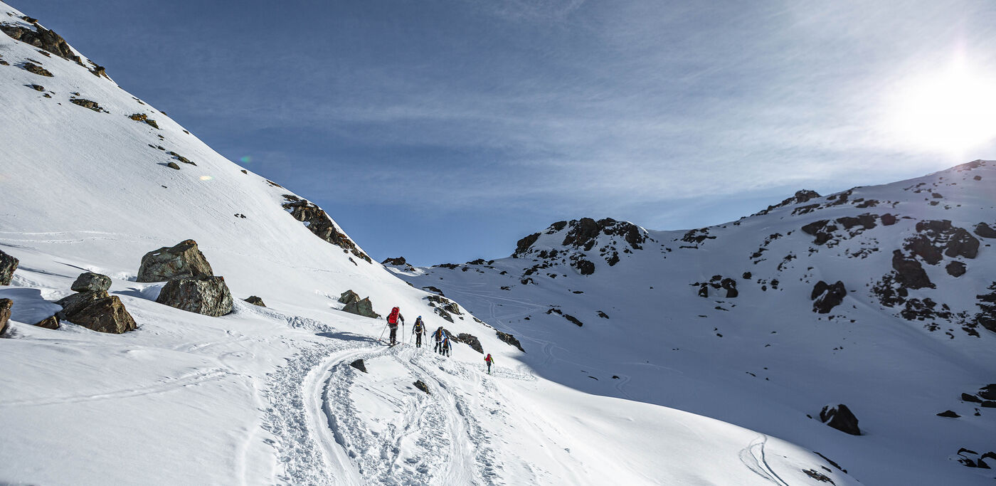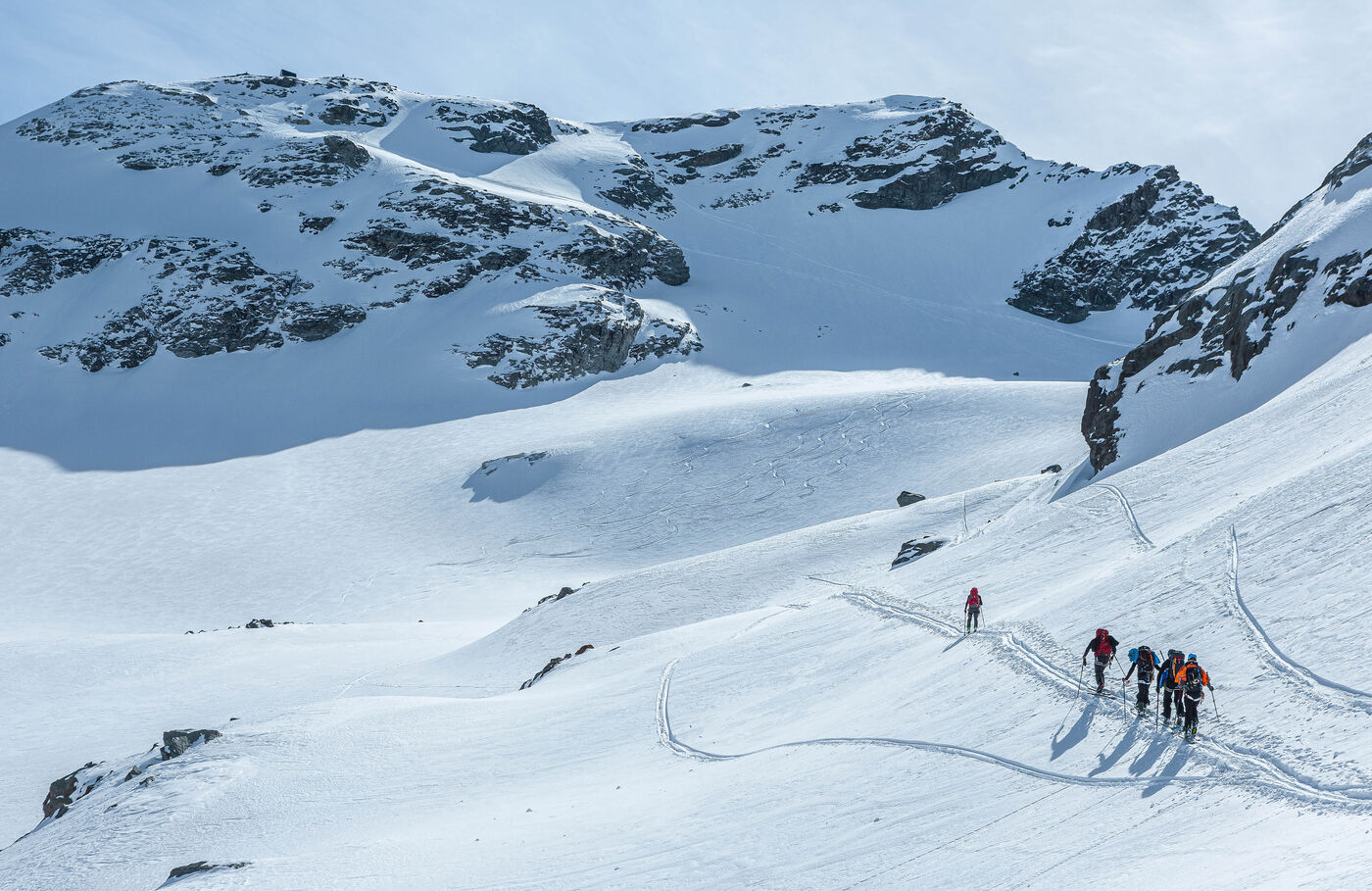 Mars 2025, six amis se lancent à skis sur une partie de la Haute-Route reliant Chamonix à Zermatt par une variante d'itinéraire moins fréquentée et des refuges non gardés. Récit en images de ces 4 jours d'itinérance sur les glaciers alpins et les cimes enneigées.