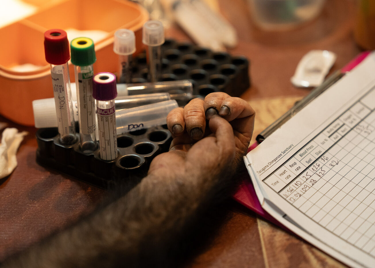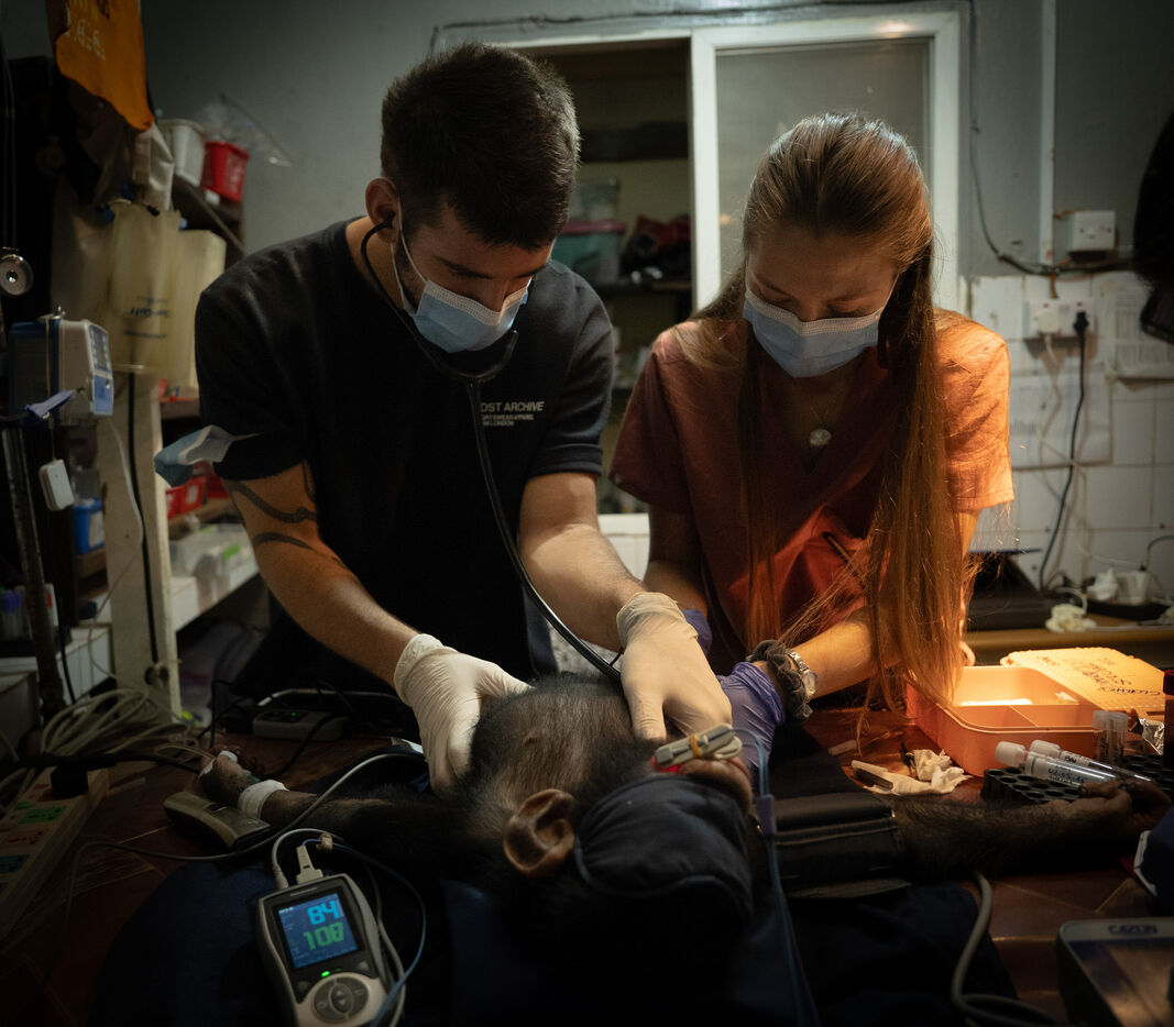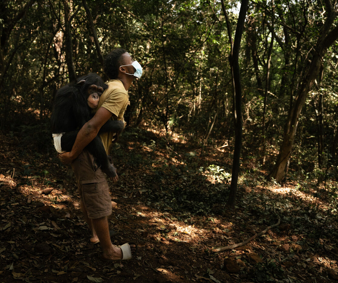 La série présente également Ramba, une femelle de sept ans dont l’histoire incarne à la fois la vulnérabilité et la résilience. En 2024, elle a souffert d’une encéphalite aiguë, une inflammation du cerveau potentiellement mortelle, qui l’a laissée partiellement paralysée. Grâce à des soins vétérinaires continus et au soutien indéfectible de son soigneur Daniel Kamara, Ramba a lentement commencé à retrouver ses mouvements, sa force et sa confiance. Aujourd’hui, elle poursuit sa réhabilitation — s’accrochant aux branches, redécouvrant le jeu et reconstruisant la confiance.