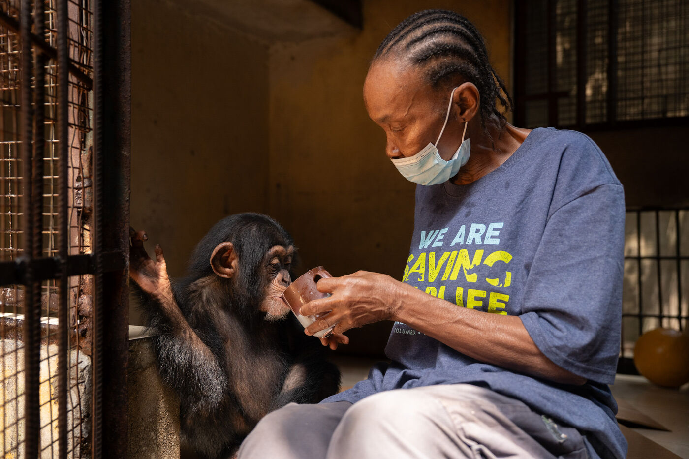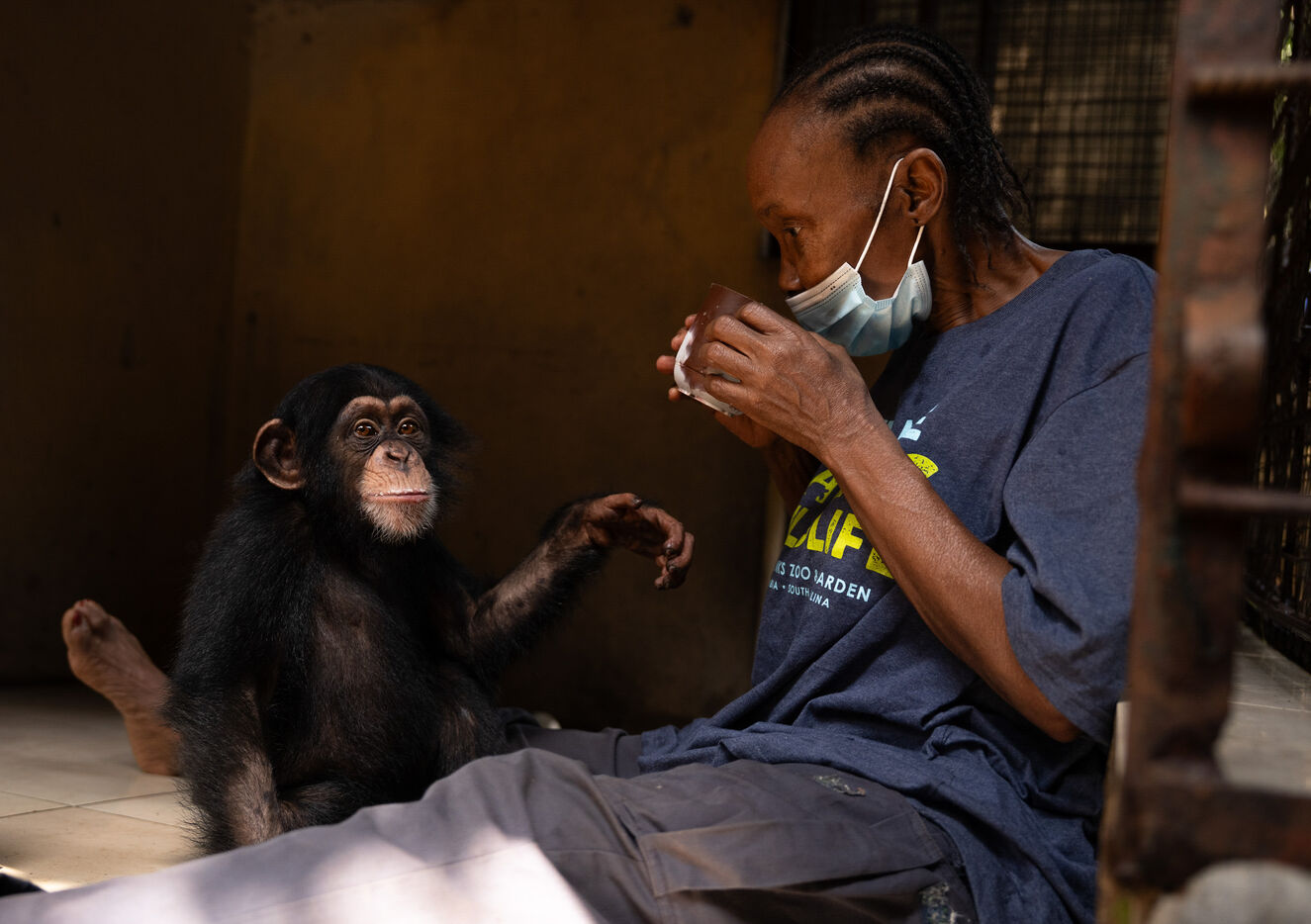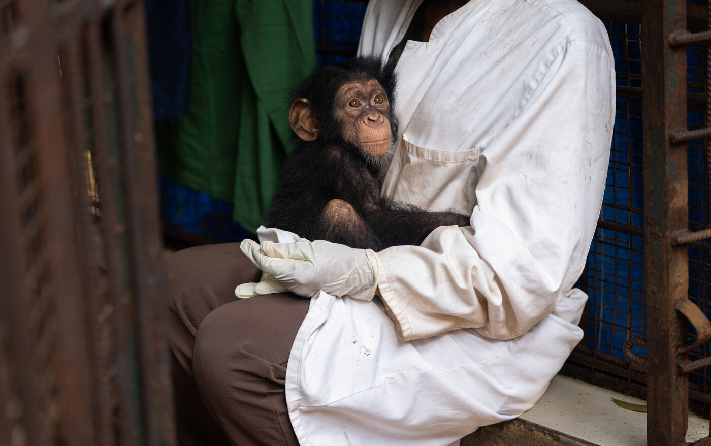 The series also features Ramba, a seven-year-old female whose story embodies both vulnerability and resilience. In 2024, she suffered from acute encephalitis, a life-threatening inflammation of the brain, which left her partially paralyzed. Through continuous veterinary care and the unwavering support of her caregiver Daniel Kamara, Ramba slowly began to regain movement, strength, and confidence. Today, she continues her rehabilitation—gripping branches, rediscovering play, and rebuilding trust.