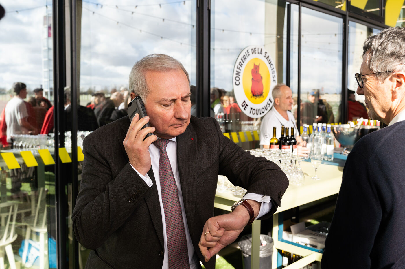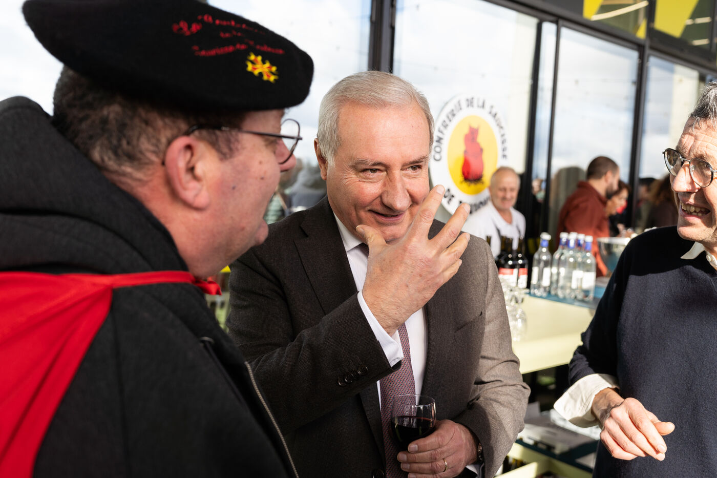 The Mayor of Toulouse and municipal election candidate Jean-Luc Moudenc as well as the leading figure of the farmers' protest movement Jérôme Bayle attended the 'Confrérie de la Saucisse' (Sausage Brotherhood) gala lunch and reception on Monday, January 26, 2026. The event took place at the MEETT exhibition center as part of the Smahrt trade fair, a major professional event for the food and hospitality industry.
