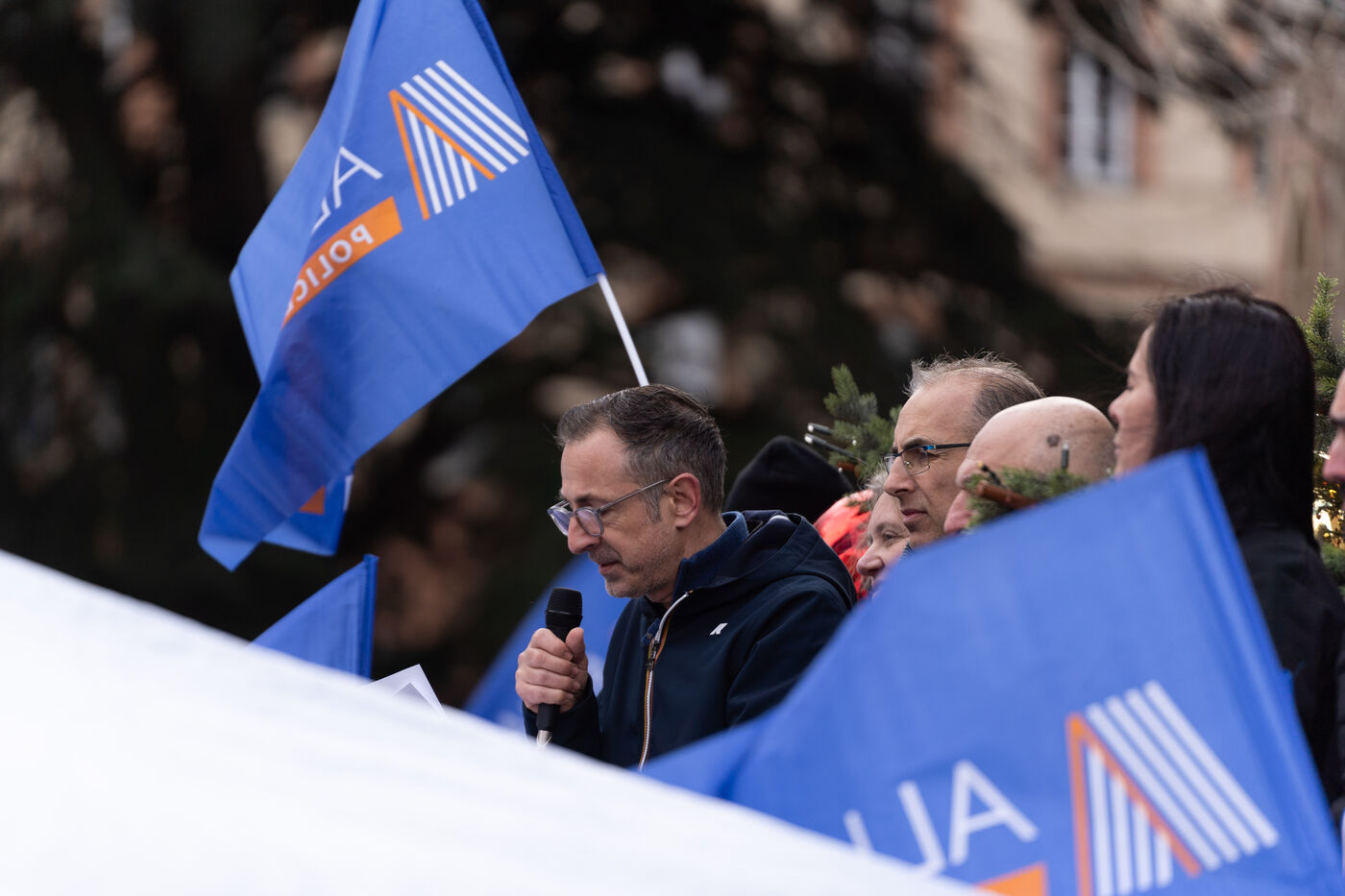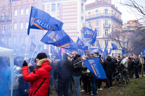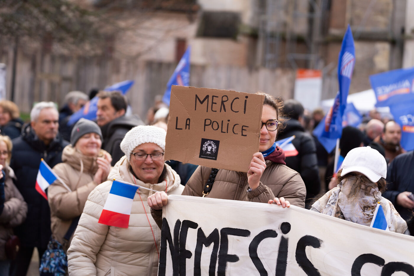 Des policiers et sympathisants se sont réunis le 31 janvier 2026 devant la cathédrale Saint-Etienne à l’appel du syndicat Alliance Police Nationale. Les manifestants réclament davantage de moyens, de meilleurs équipements et une amélioration de leurs conditions de travail.