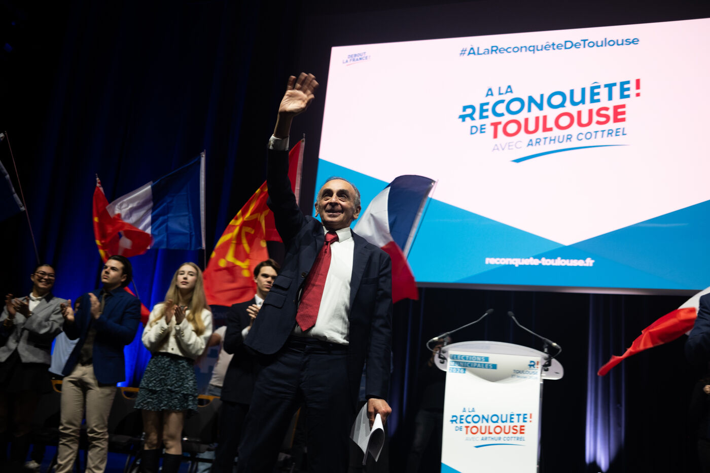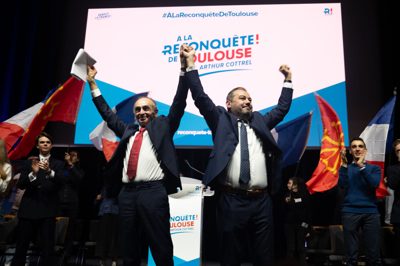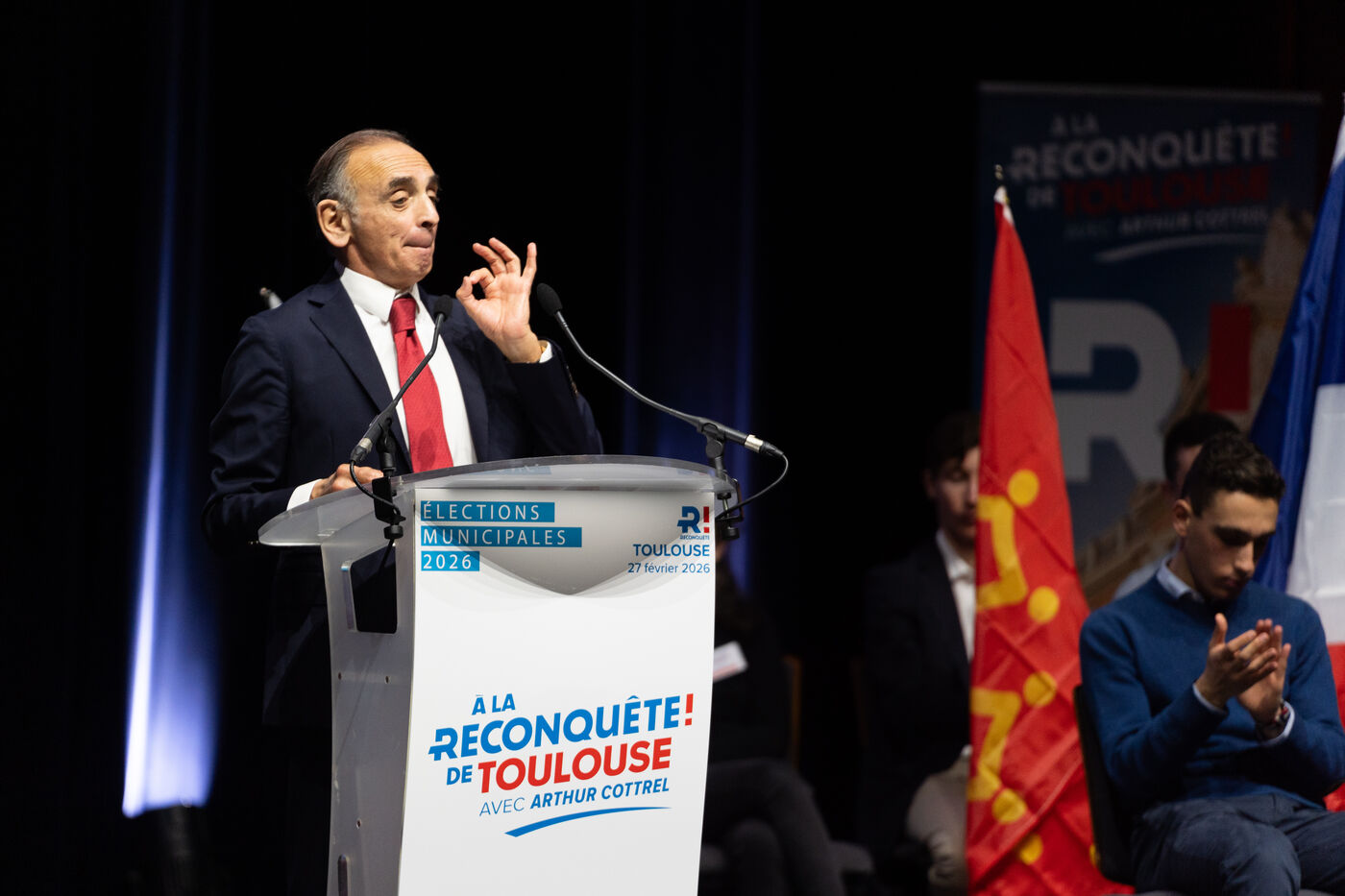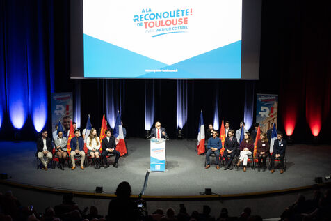 This Friday, February 27, 2026, Reconquête! president Éric Zemmour held a political rally at the Pierre Baudis Convention Center in Toulouse. This event marks a key stop in his national tour to mobilize voters ahead of upcoming elections. Speaking to a full house, the party leader officially endorsed Arthur Cottrel's candidacy for the Toulouse municipal elections, positioning the "Ville Rose" as a strategic symbol of his party's grassroots territorial campaign.