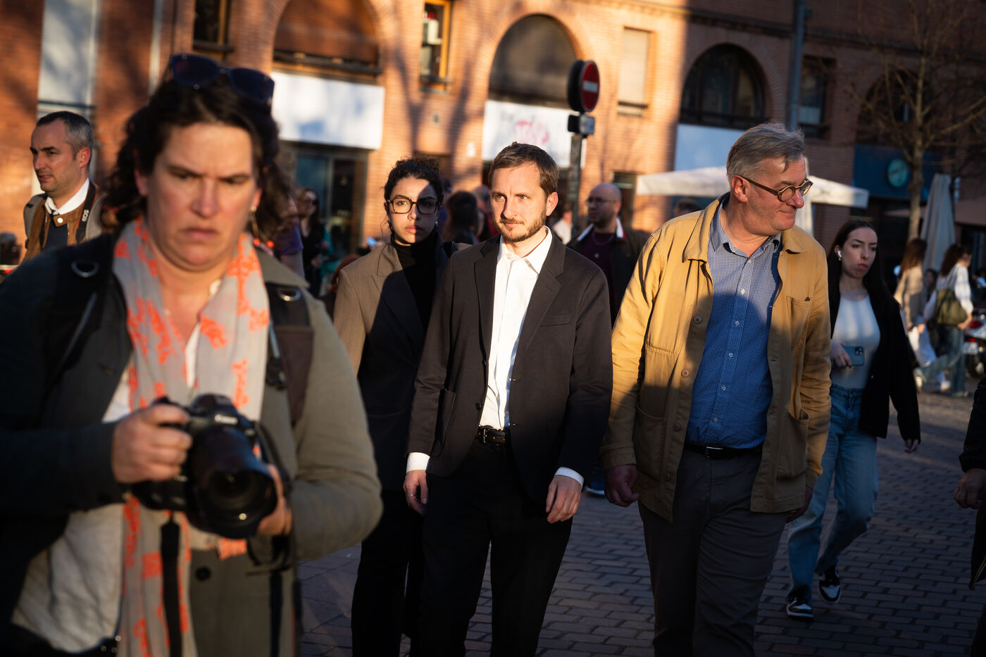On Tuesday March 17 the united left-wing ticket Demain Toulouse took over Place Saint-Sernin for two major campaign events. At 5:30 PM a press conference was held at the Magic Pumpkin bar to present emergency measures for the purchasing power of Toulouse residents. The meeting took place in the presence of mayoral candidate Francois Piquemal and Francois Briancon candidate for the Presidency of the Metropole along with Isabelle Hardy Regis Godec and Ilham Grefi. In the early evening this gathering continued on the square with a rally of 1500 people bringing together candidates members and numerous supporters of the ticket in a mobilization drive for the second round.