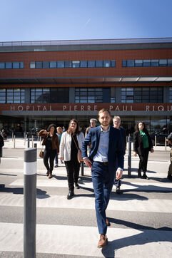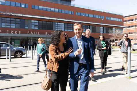 François Piquemal and Manon Aubry visiting Purpan Hospital