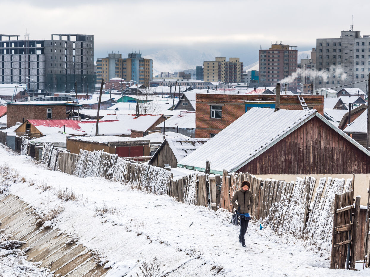 Le voyageur occidental qui débarquait à Oulan-Bator en ce mois d'octobre 2013 était vite étreint par un doux sentiment d'étrangeté. Tiraillée entre les sphères d'influence de deux colosses géopolitiques qui voyait le brutalisme soviétique côtoyer des Bouddhas dorés, la Mongolie était alors à mi-chemin entre une tradition rurale ancrée et une course effrénée vers l'avant accélérée par le changement climatique. Les épisodes de froid intense envoient s'échouer aux abords de la villes des nomades ayant perdus leur troupeaux tandis que le boom de l'immobilier et l'industrialisation forcée faisaient germer tours de béton et cheminées d'usine...