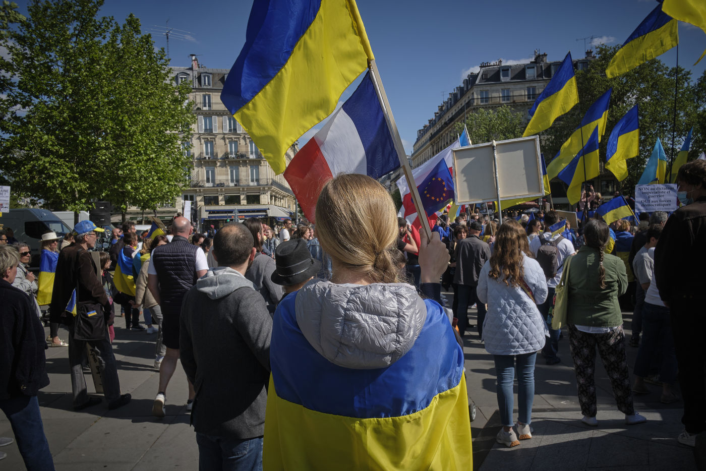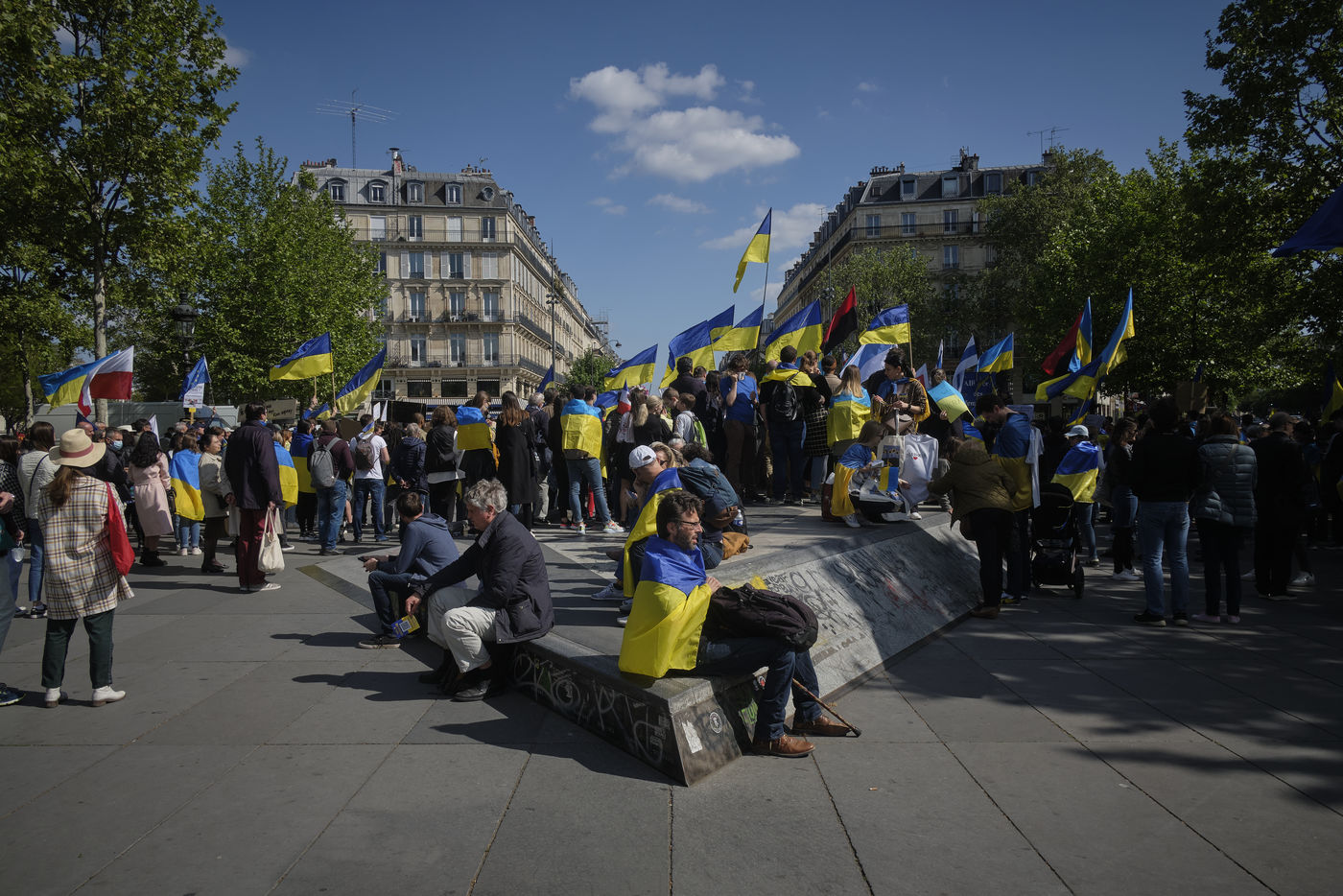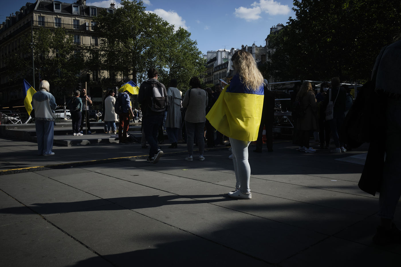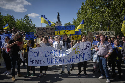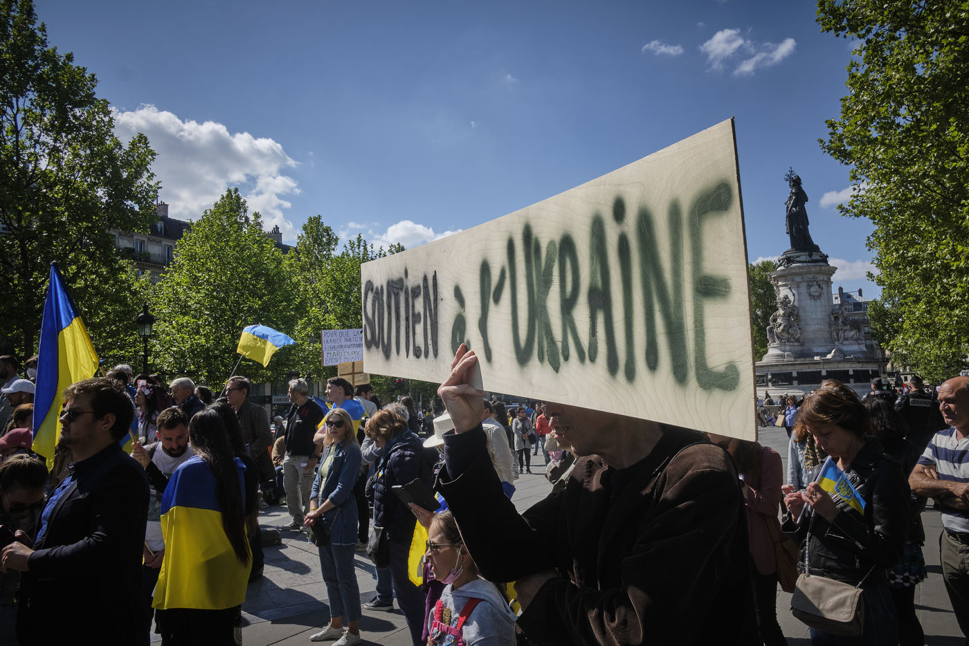 After more than two months of conflict, hundreds of demonstrators continue to respond to calls to support the Ukrainian people. For this rally on the Place de la République in Paris, the various speakers are asking for more international aid, weapons for Ukrainian fighters, an immediate ceasefire, the opening of humanitarian corridors secured by international organisations, the unconditional withdrawal of Russian troops from Ukraine, the sovereignty and territorial integrity of Ukraine.
