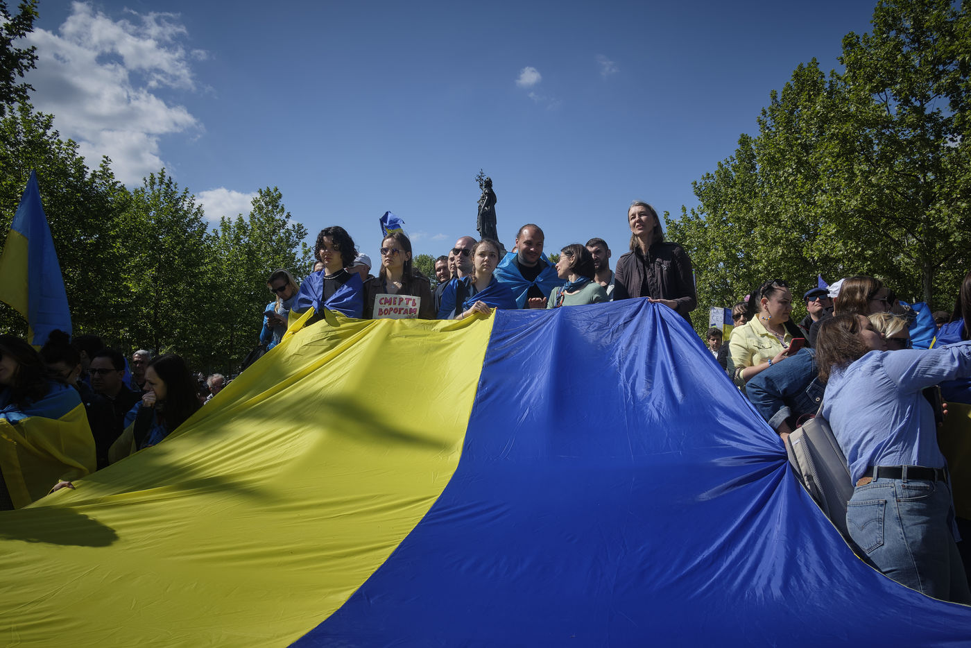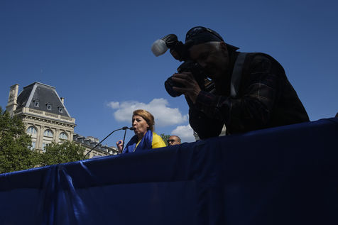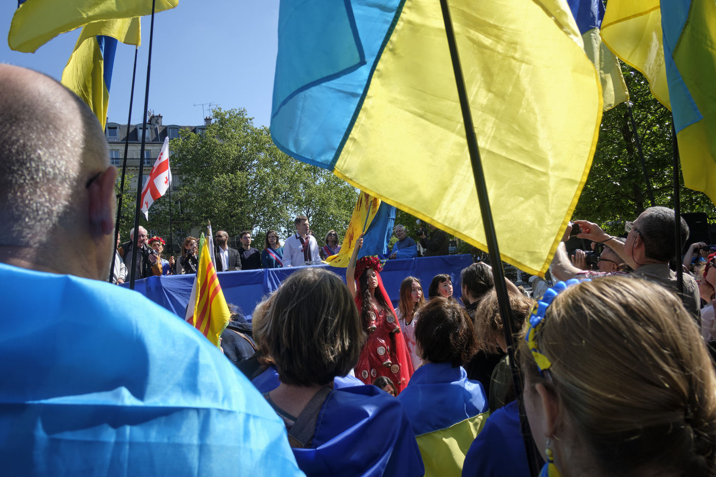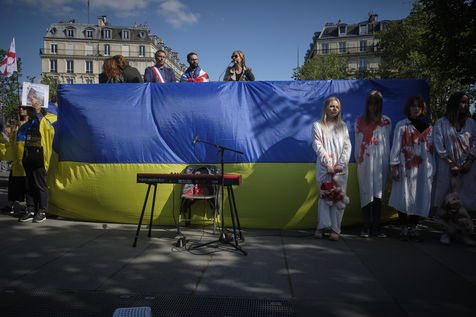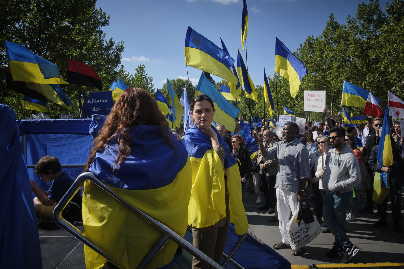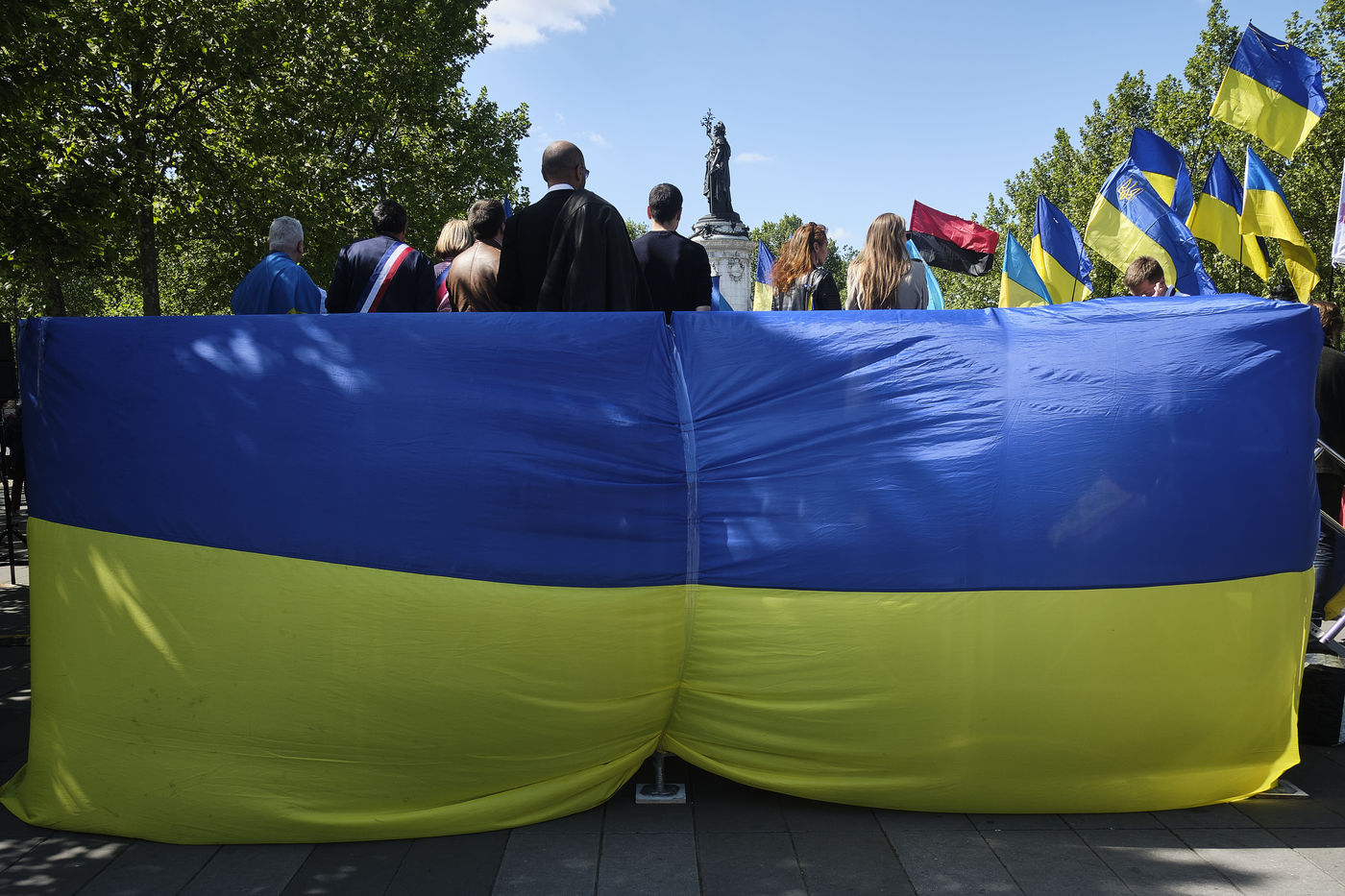 After more than two months of conflict, hundreds of demonstrators continue to respond to calls to support the Ukrainian people. For this rally on the Place de la République in Paris, the various speakers are asking for more international aid, weapons for Ukrainian fighters, an immediate ceasefire, the opening of humanitarian corridors secured by international organisations, the unconditional withdrawal of Russian troops from Ukraine, the sovereignty and territorial integrity of Ukraine.