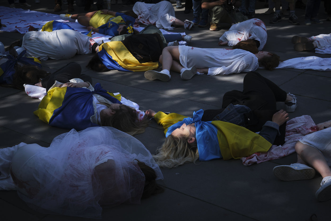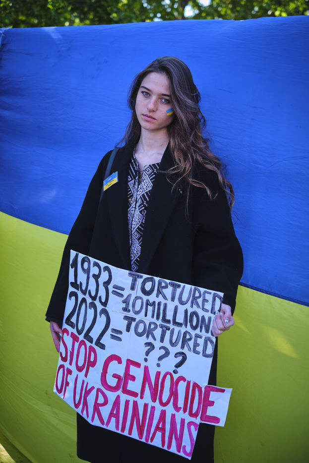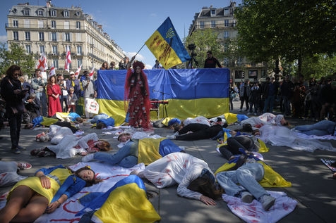 Apres plus deux mois de conflit, des centaines manifestants continuent de repondre aux appels pour soutenir le peuple ukrainien. Pour ce rassemblement sur la Place de la Republique de Paris, les differents intervenants demandent une aide internationale plus importante, des armes pour les combattants Ukrainiens, un cessez-le-feu immediat, l ouverture de couloirs humanitaires securises par des organisations internationales, le retrait sans condition des troupes russes d Ukraine, la souverainete et l integrite territoriale de l Ukraine.