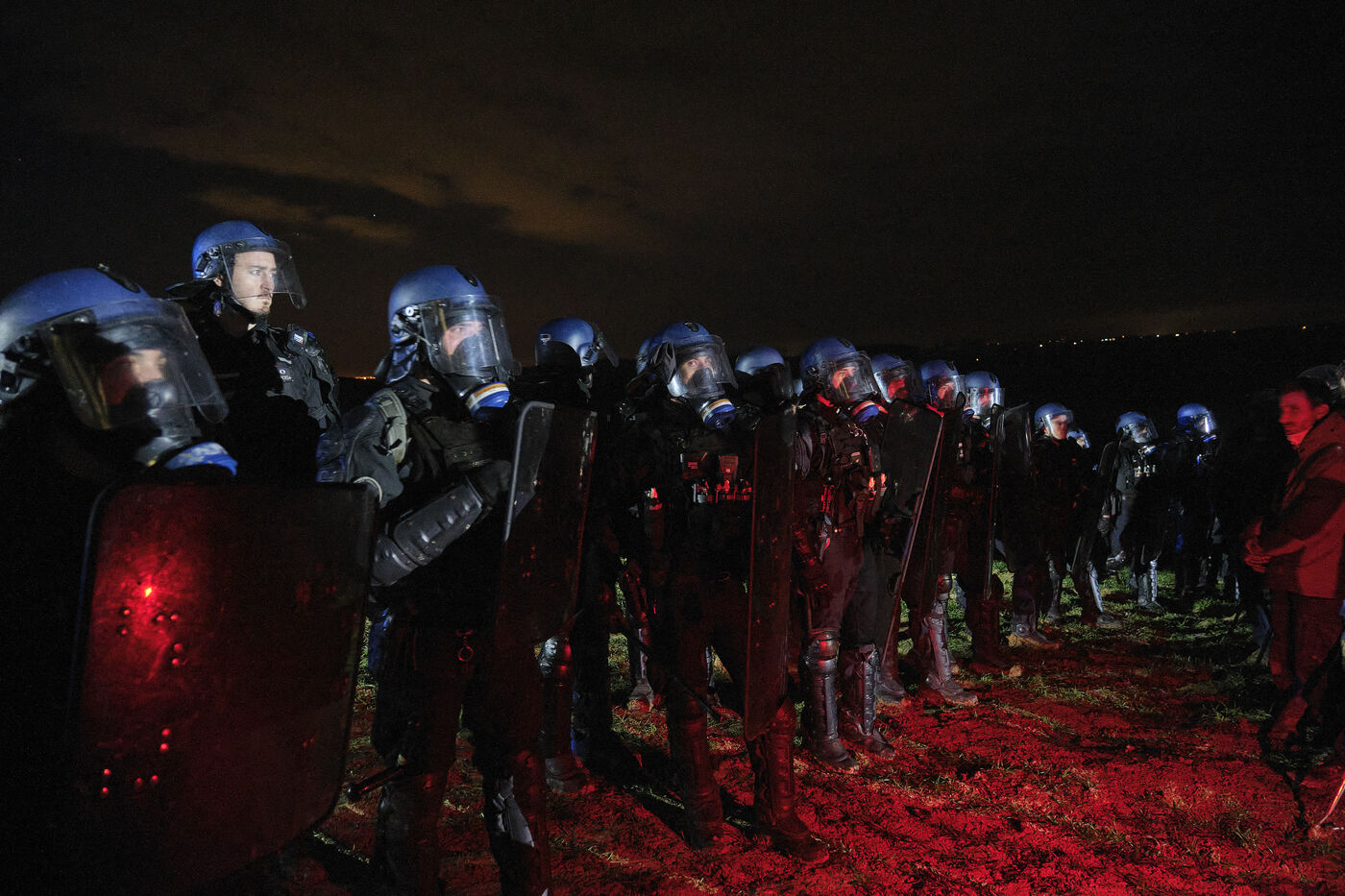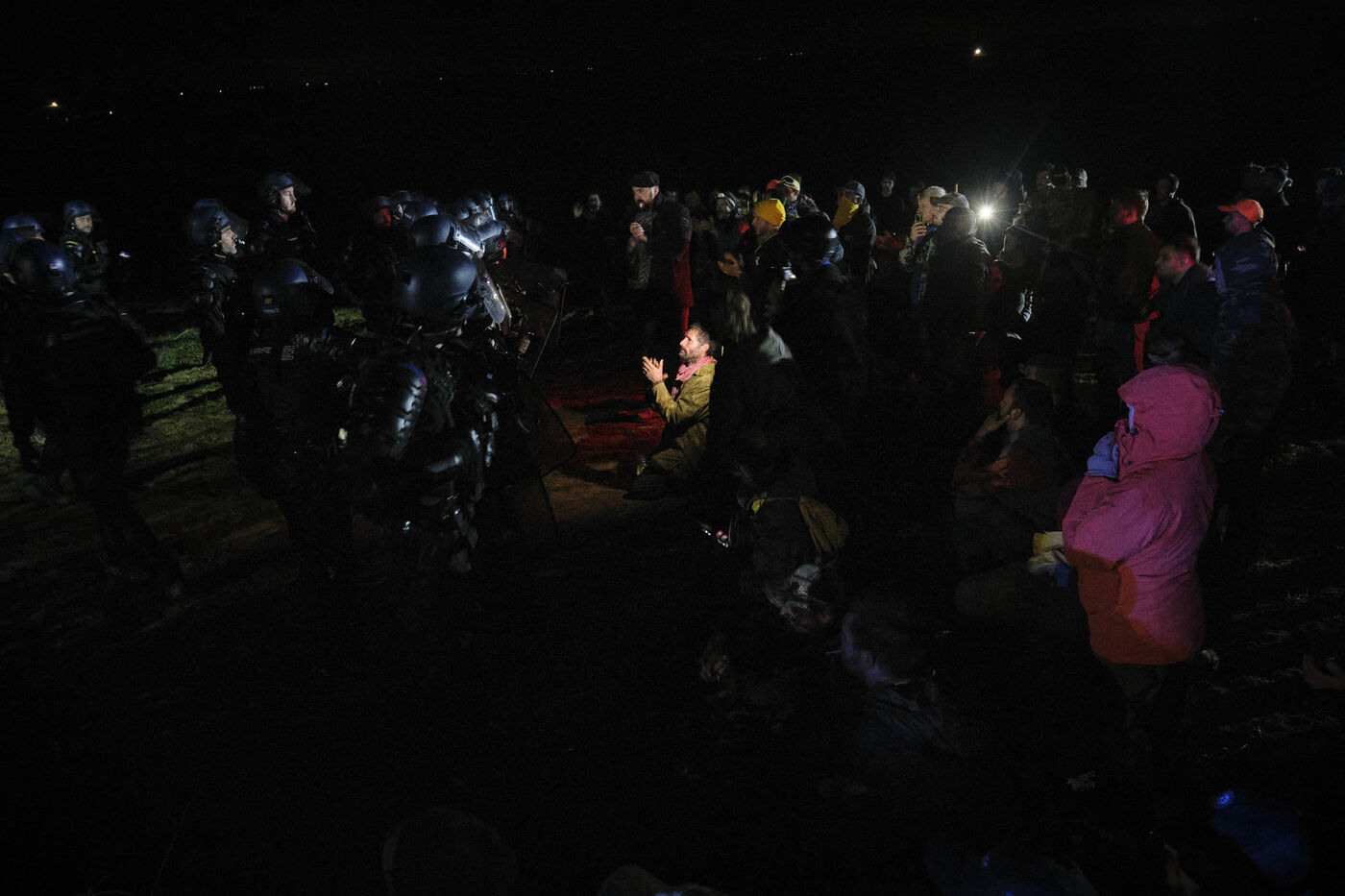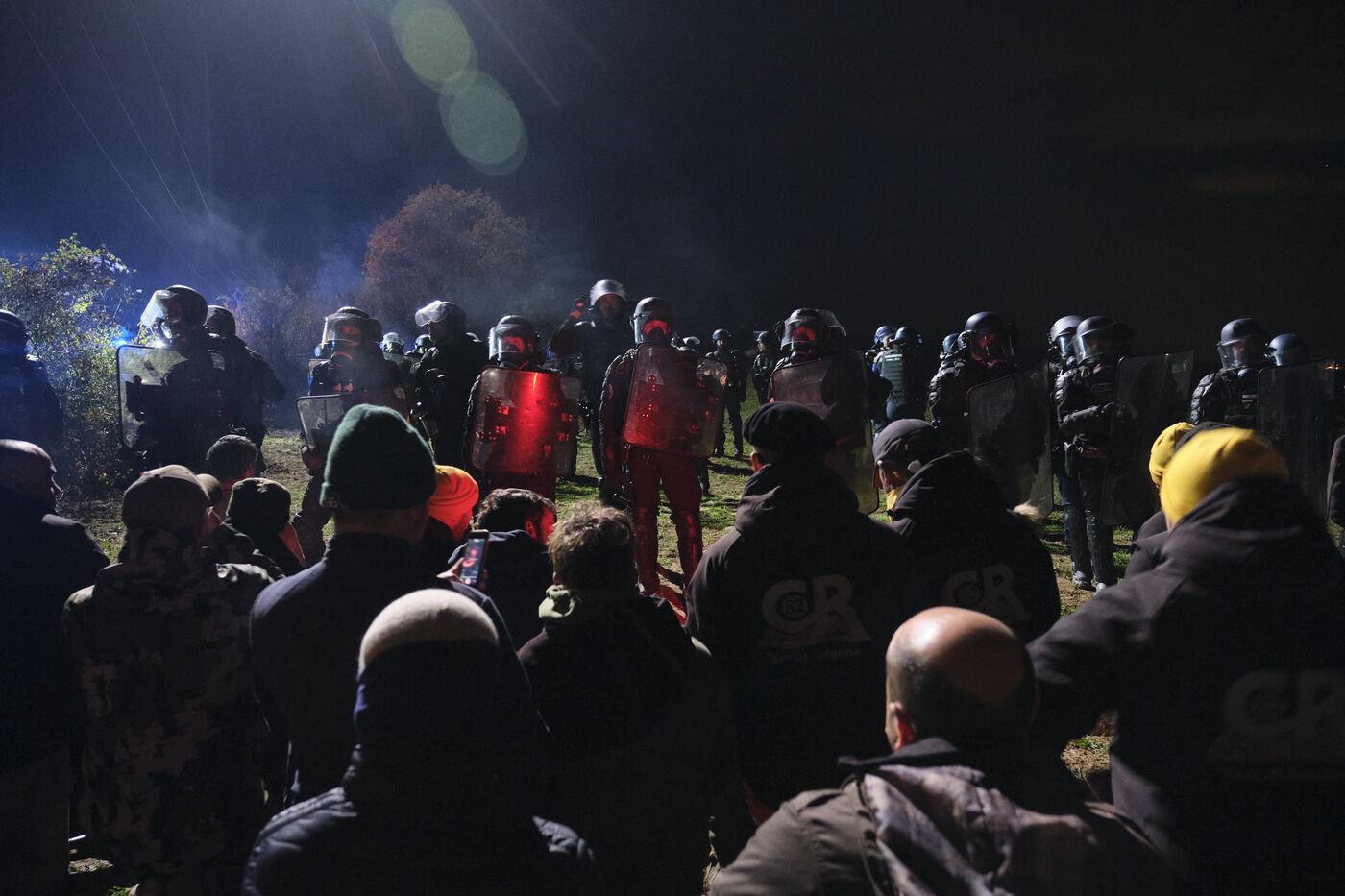 Des centaines d'agriculteurs, soutenus par Coordination Rurale, ont bloqué l'accès à l'exploitation avec leurs tracteurs la veille, dénonçant une mesure sanitaire « disproportionnée » qui menace la survie d'une exploitation familiale. Les forces de l'ordre ont tenté de franchir les barricades à la fin de la journée du 11 décembre 2025, provoquant de violents affrontements malgré les appels au calme lancés par les manifestants.