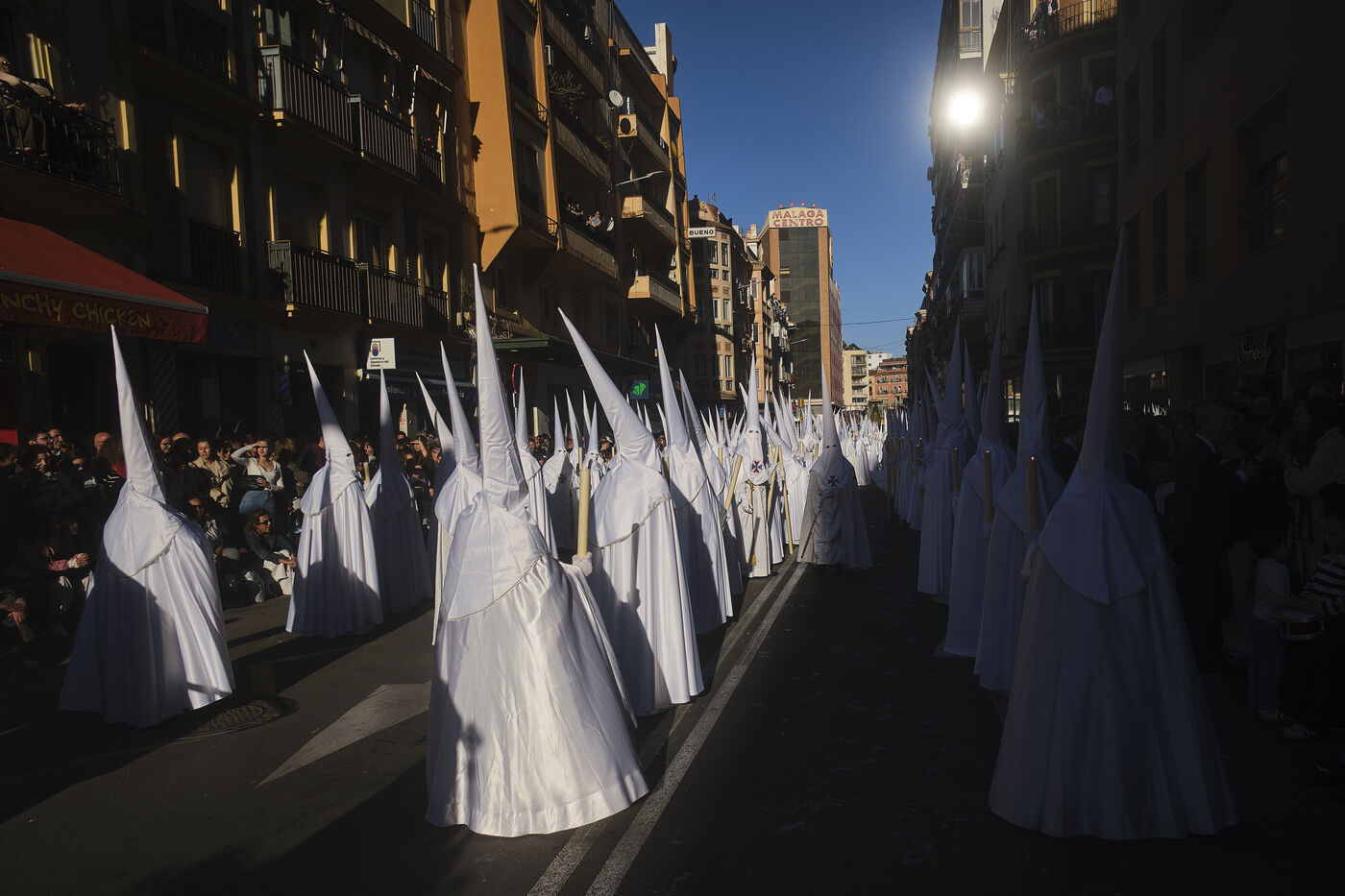 Chaque année à Malaga, la Semaine Sainte transforme la ville en un immense parcours de processions. Datant du XVIe siècle, ces célébrations mêlent foi catholique, traditions populaires et spectacle collectif. Les confréries (cofradías) organisent des processions au cours desquelles les Nazarenos, reconnaissables à leurs longues robes et à leurs capuches, accompagnent les chars richement décorés représentant des scènes de la Passion du Christ.