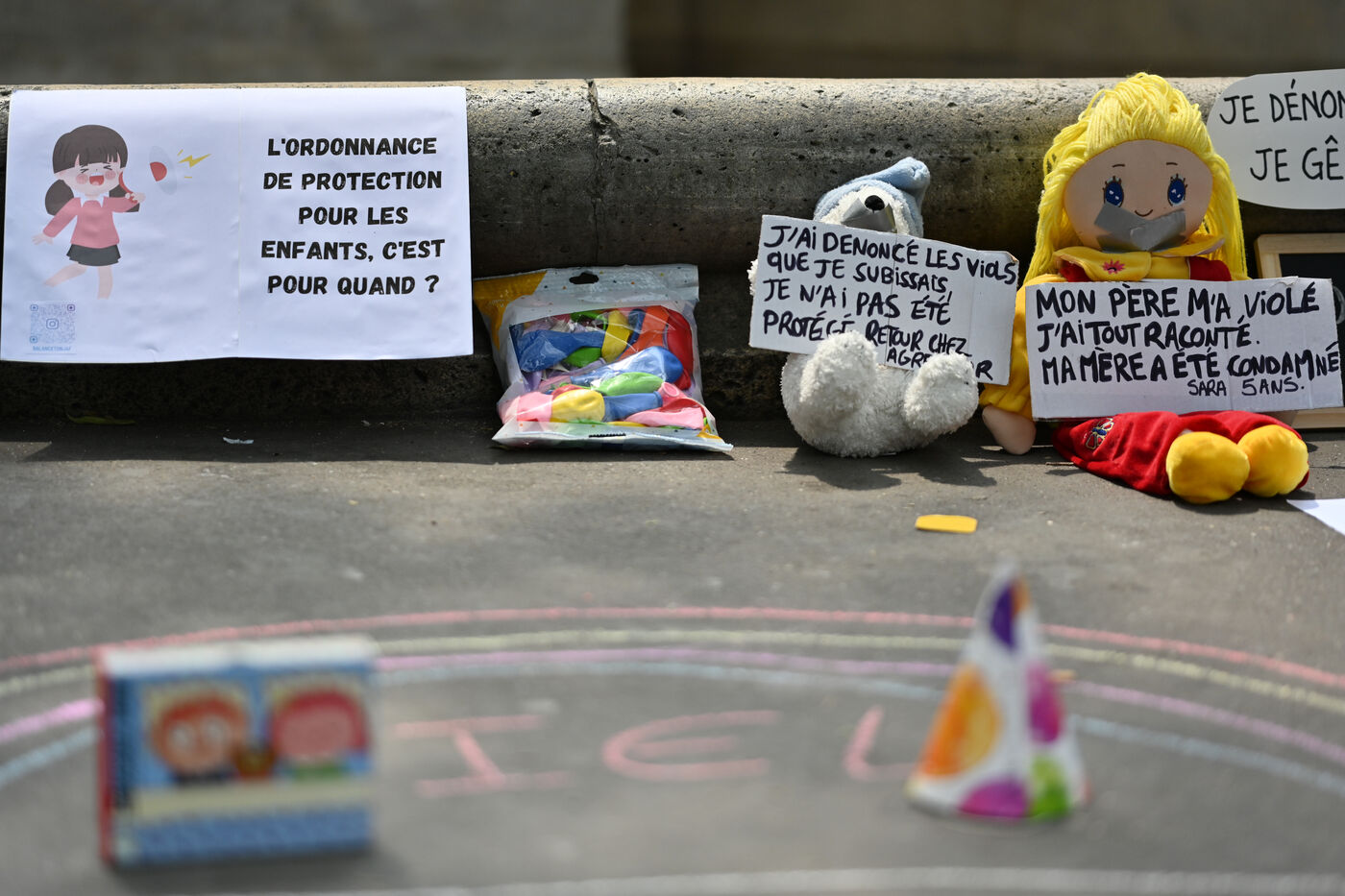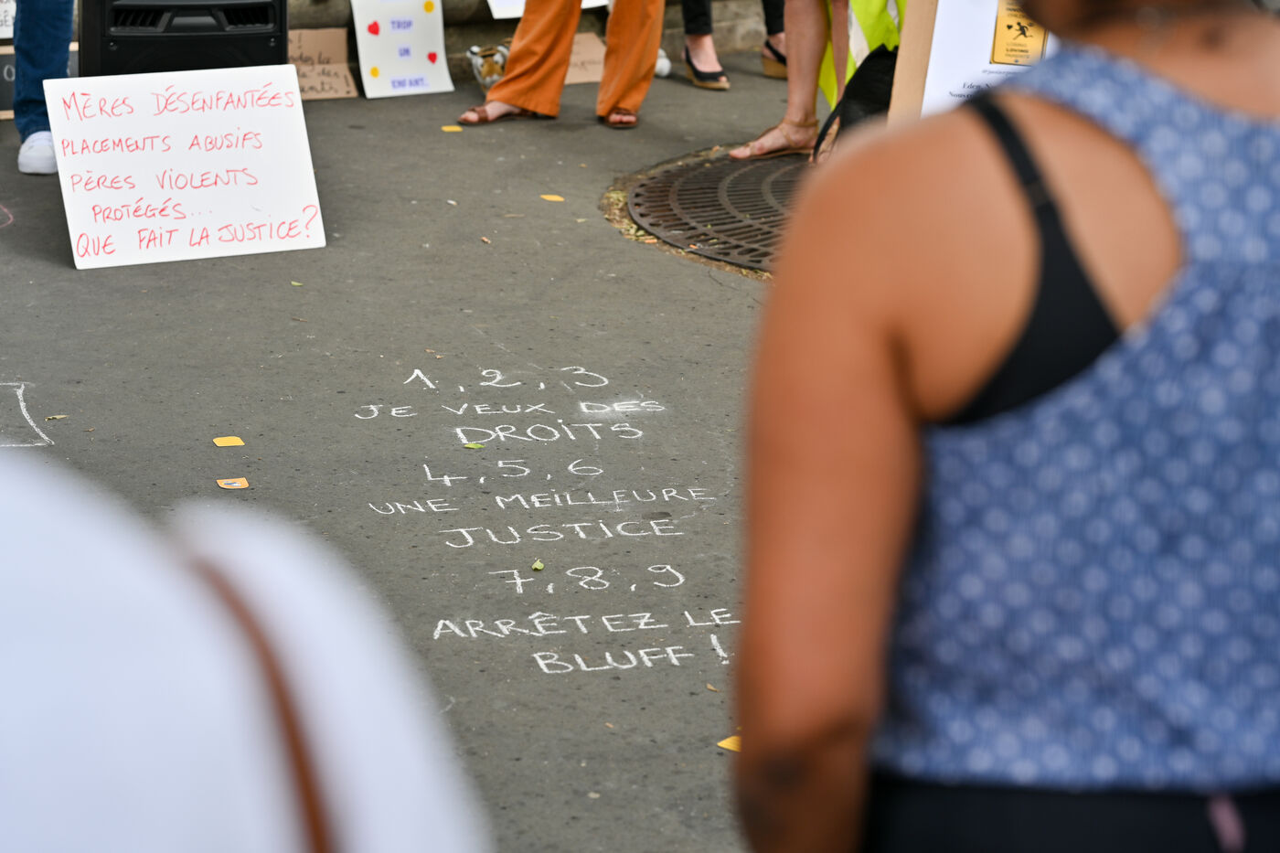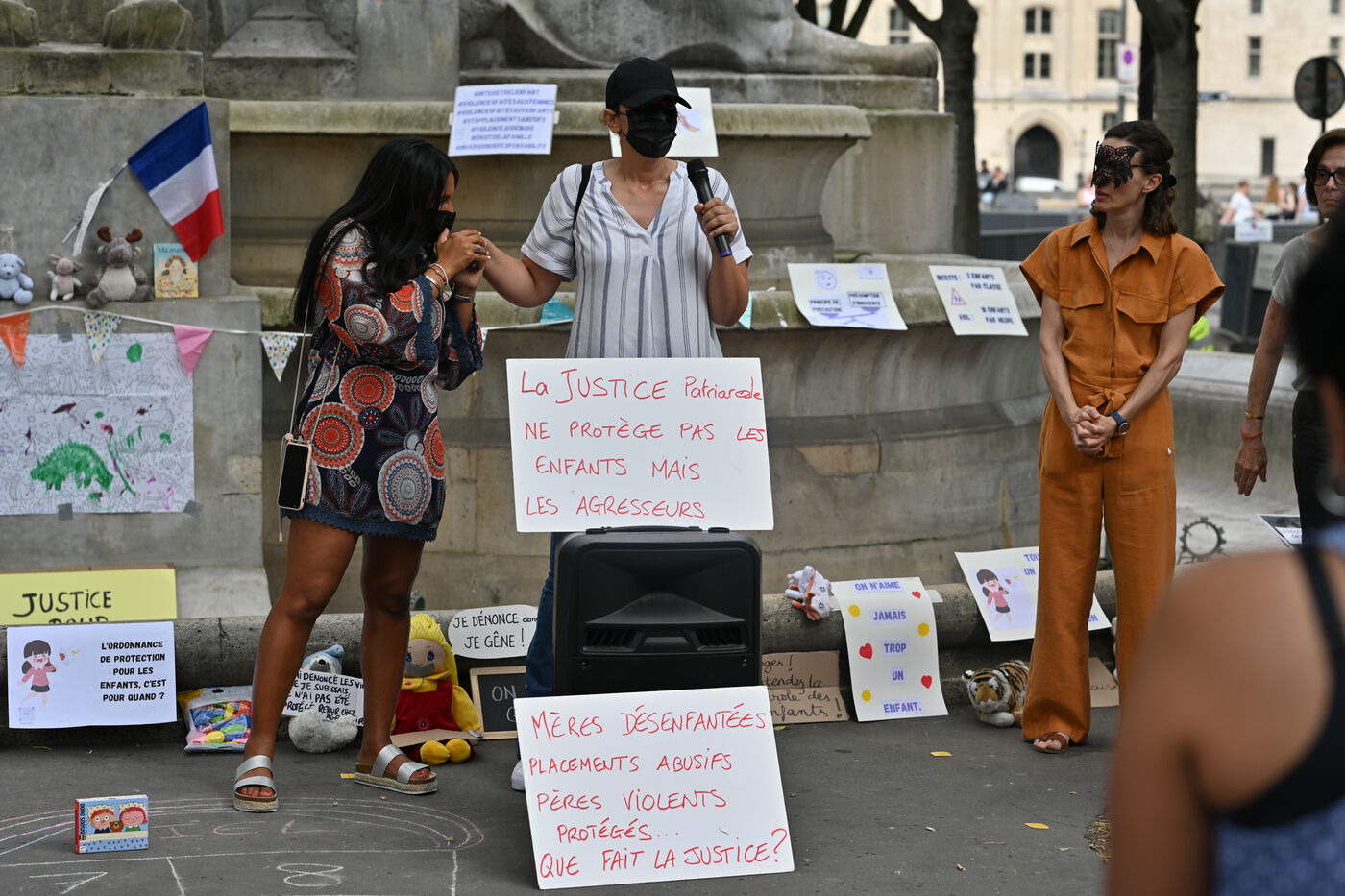 Rally for the protection of children in the context of domestic violence in Paris, place du Châtelet, organised by balancetonjaf, khadija_lacombattante, collectivemeresisolees and let's protect children.