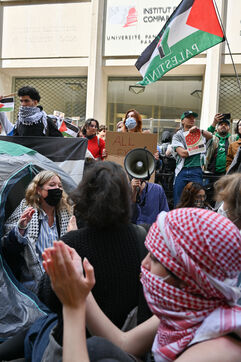 Tuesday morning, a first gathering took place in front of the main entrance of Sciences Po, but was dispersed by the authorities. A second one was organized at noon. According to the administration, thirteen students are continuing their hunger strike.