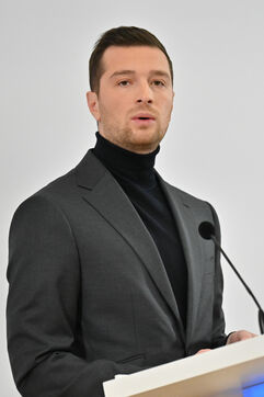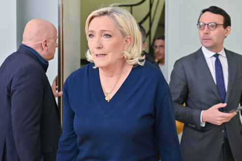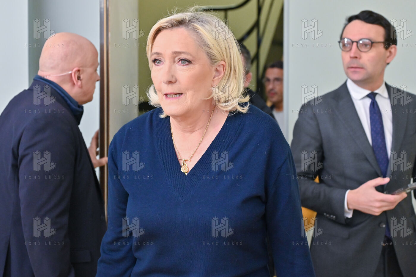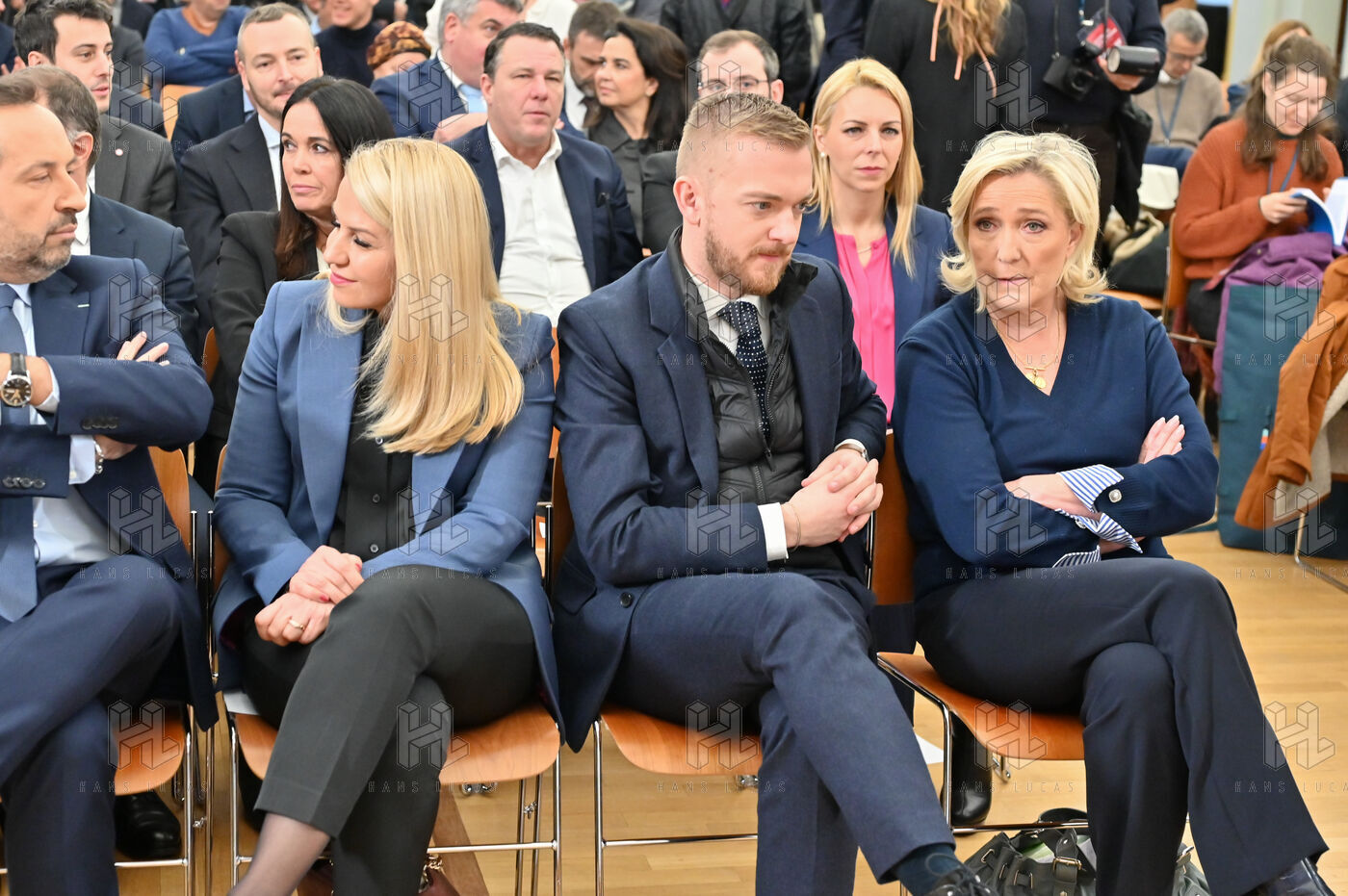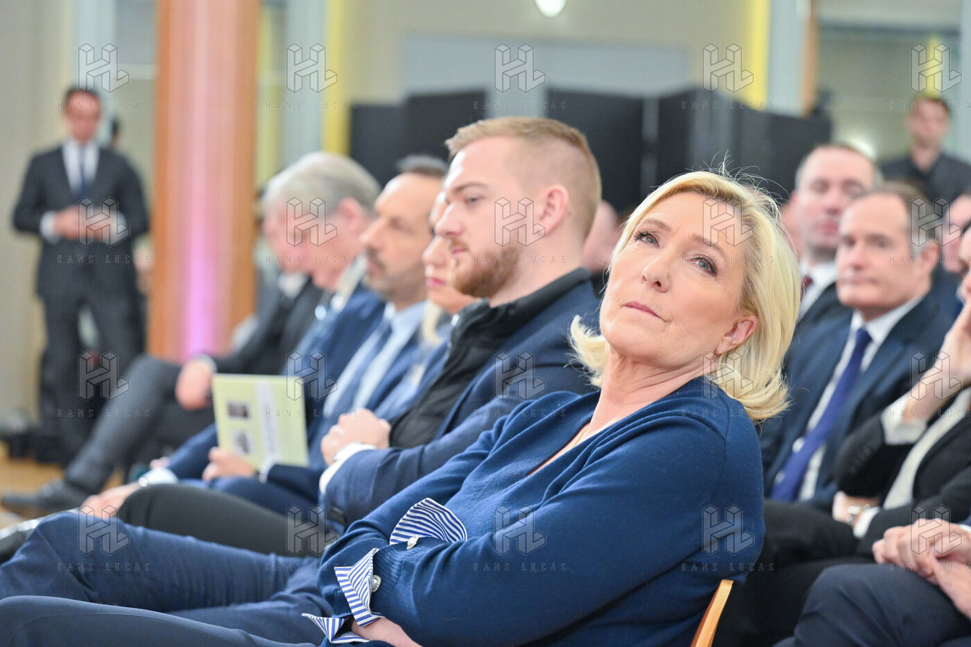Ceremony of New Year's wishes to the press by RN's Jordan Bardella in the presence of Marine Le Pen at the Maison de la Chimie in Paris.