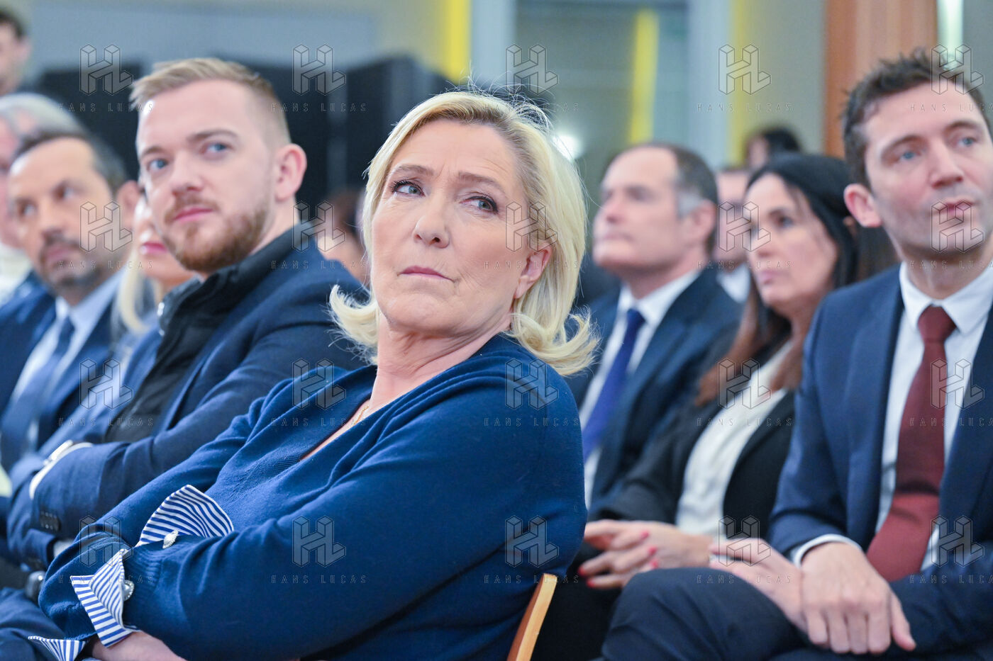 Cérémonie de vœux à la presse du RN de Jordan Bardella en presence de Marine Le Pen à la maison de la Chimie.