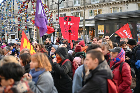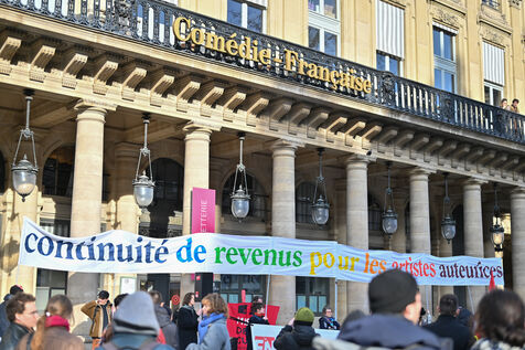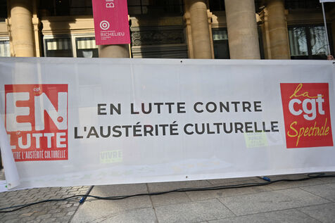 Facing budget cuts, the disengagement of public actors, the precarization of professions, and the weakening of rights, art and culture workers gather at Place Colette, in front of the Comédie-Française.