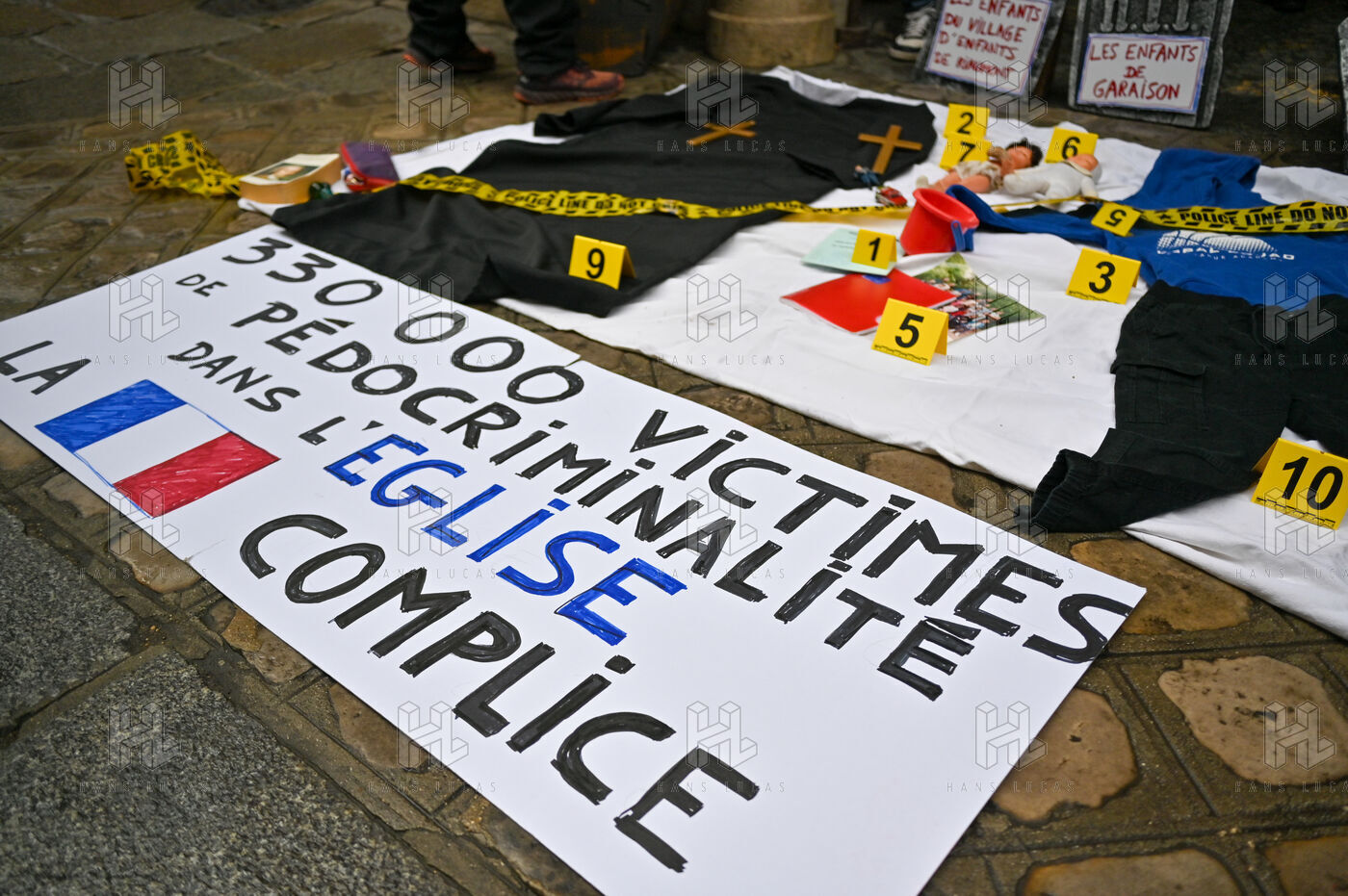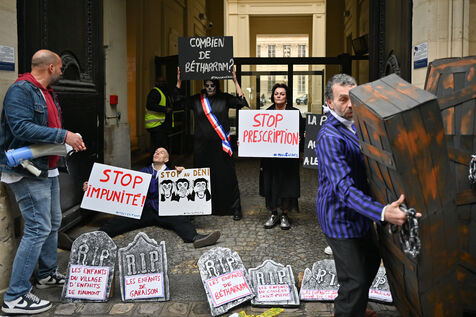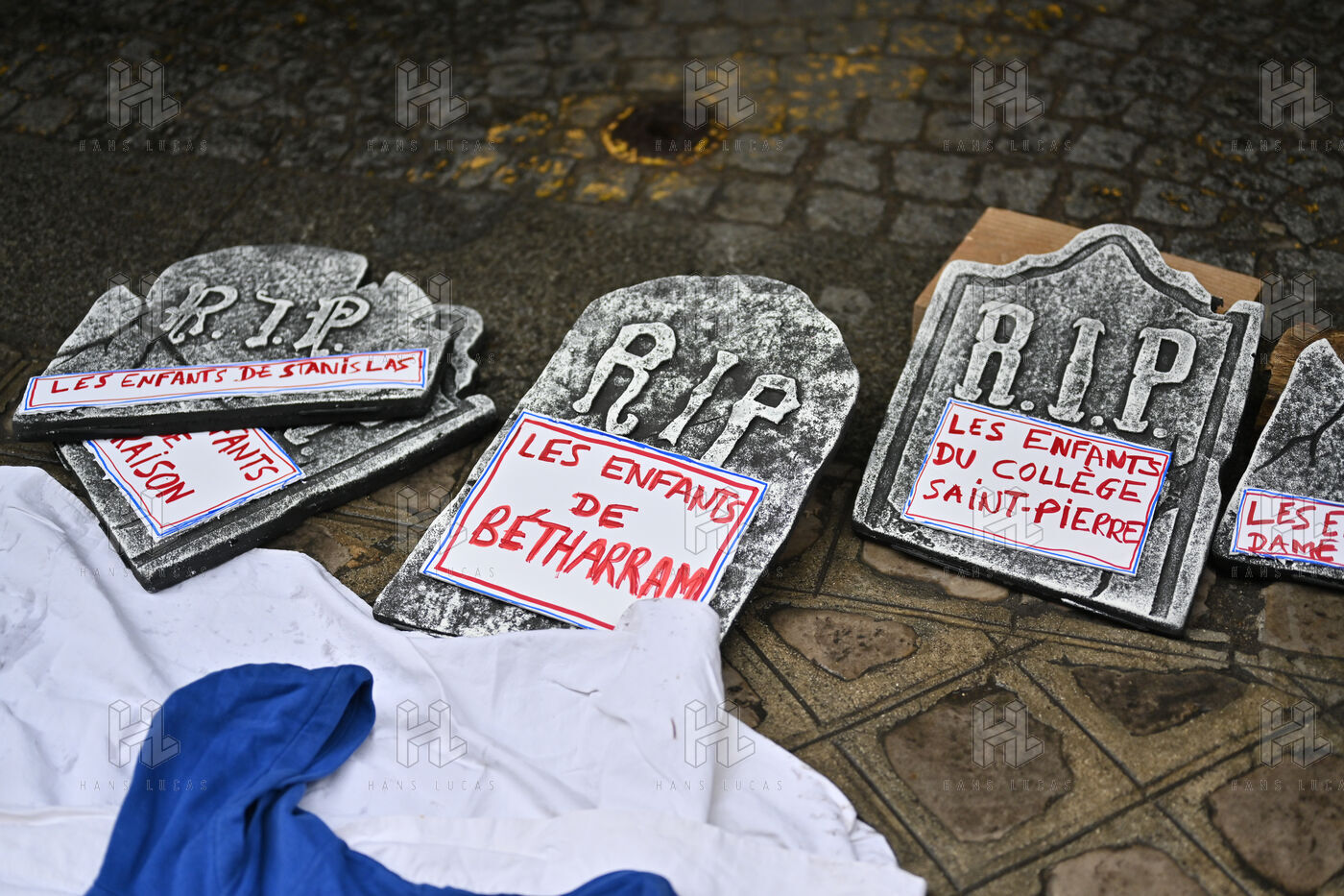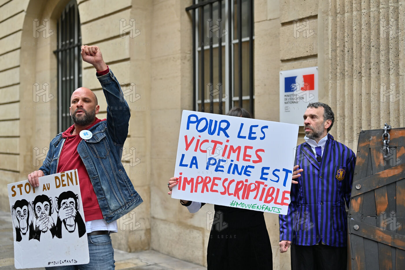 The Mouv'Enfants movement is staging a striking action in front of the Ministry of National Education to denounce the violence suffered by children in private Catholic institutions and to demand concrete measures against pedocriminality. Through a symbolic staging with coffins and signs, activists are calling out the State, the judiciary, and the Church for their inaction in the face of abuses revealed by the Sauvé report and are demanding structural reforms, including the imprescriptibility of sexual crimes against minors.