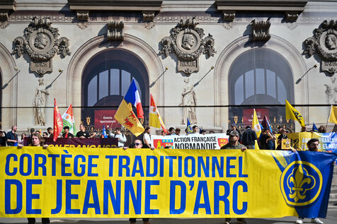 The Action francaise marched on Sunday May 14 in tribute to Jeanne d Arc. The gathering moved from the Opera toward the statue of Jeanne d Arc at Place des Pyramides.