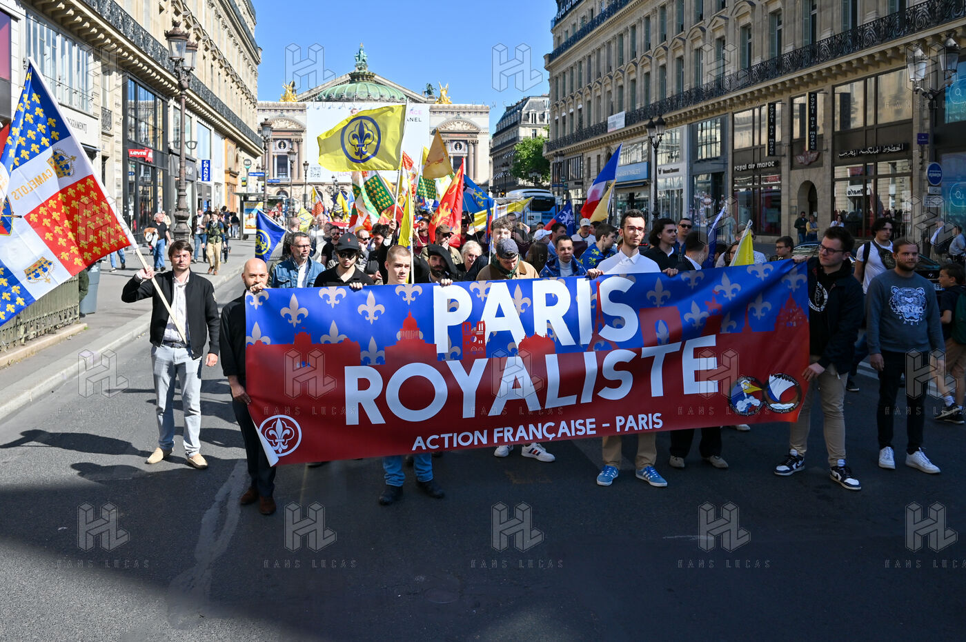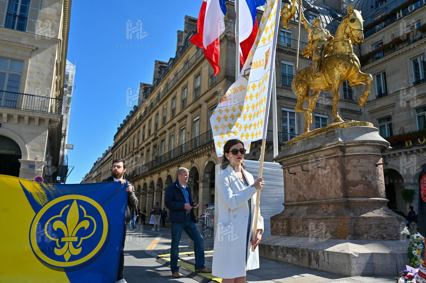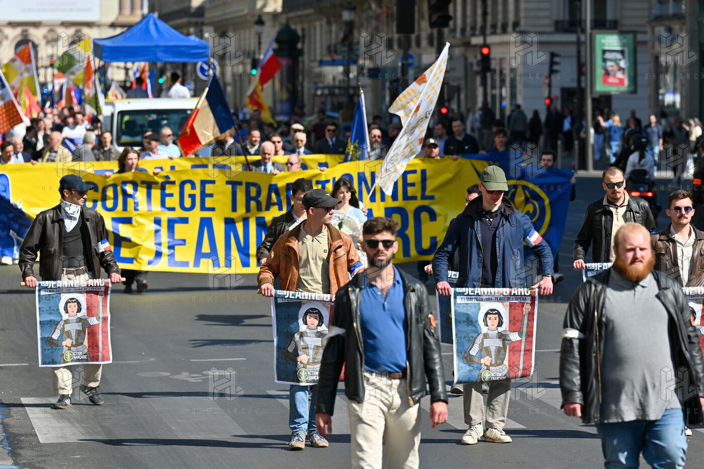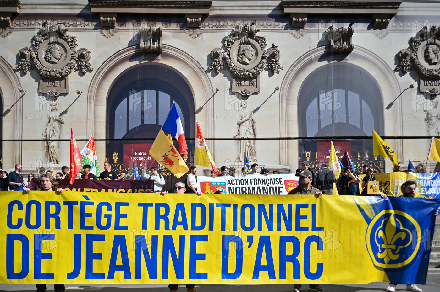 L'Action française a defilé dimanche 14 mai en hommage a Jeanne d'Arc. Le rassemblement est parti de l'Opera en direction de la statue de Jeanne d'Arc place des Pyramides.