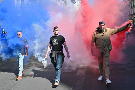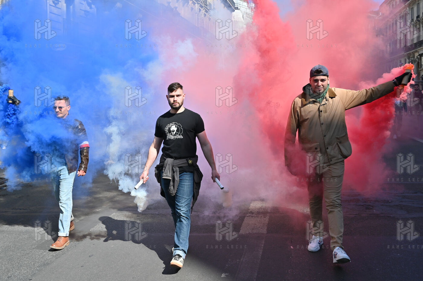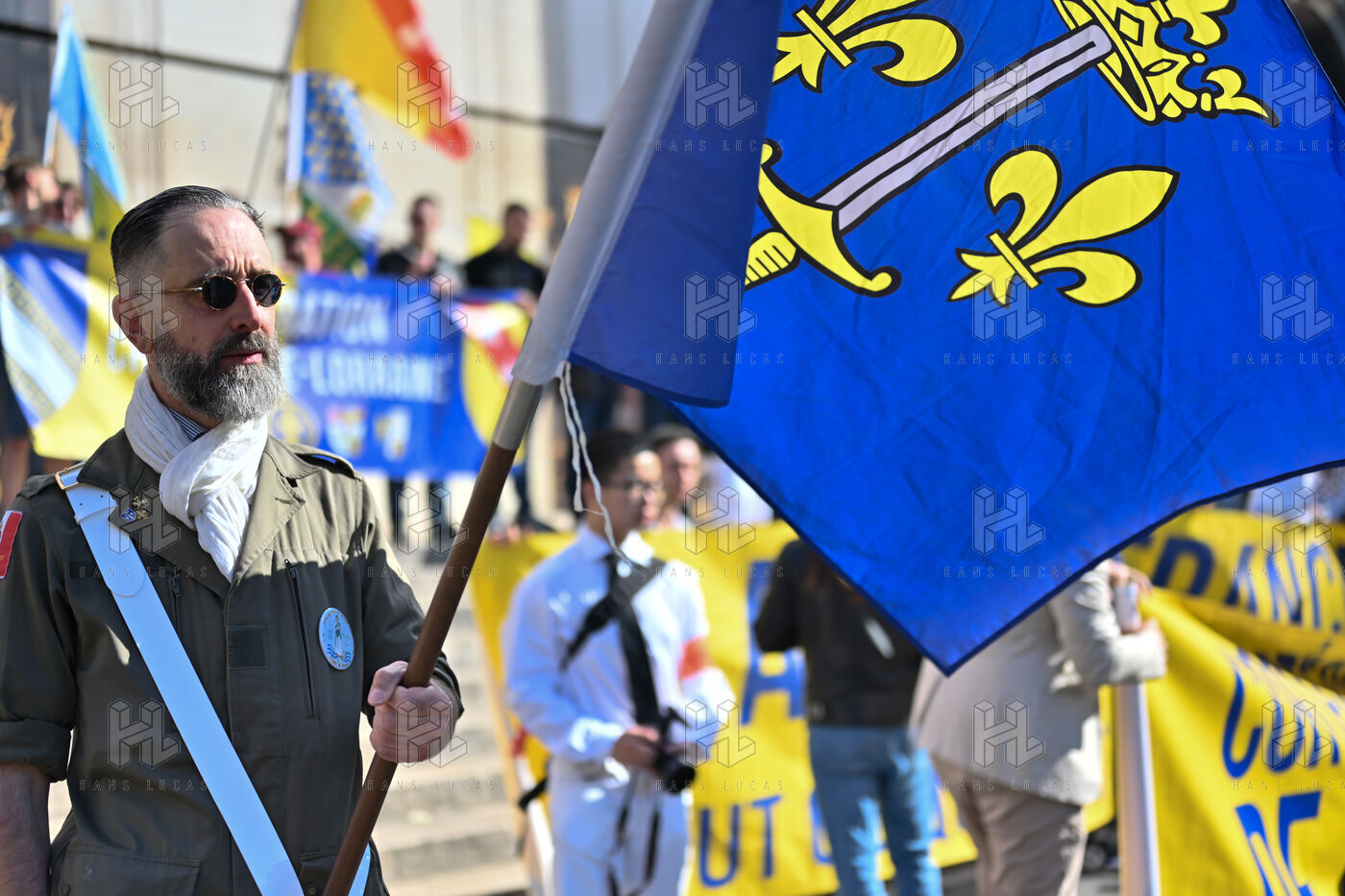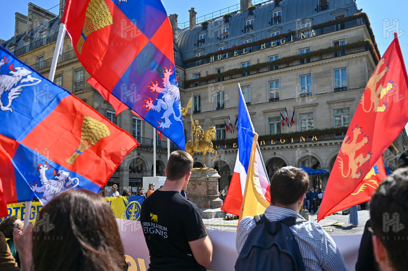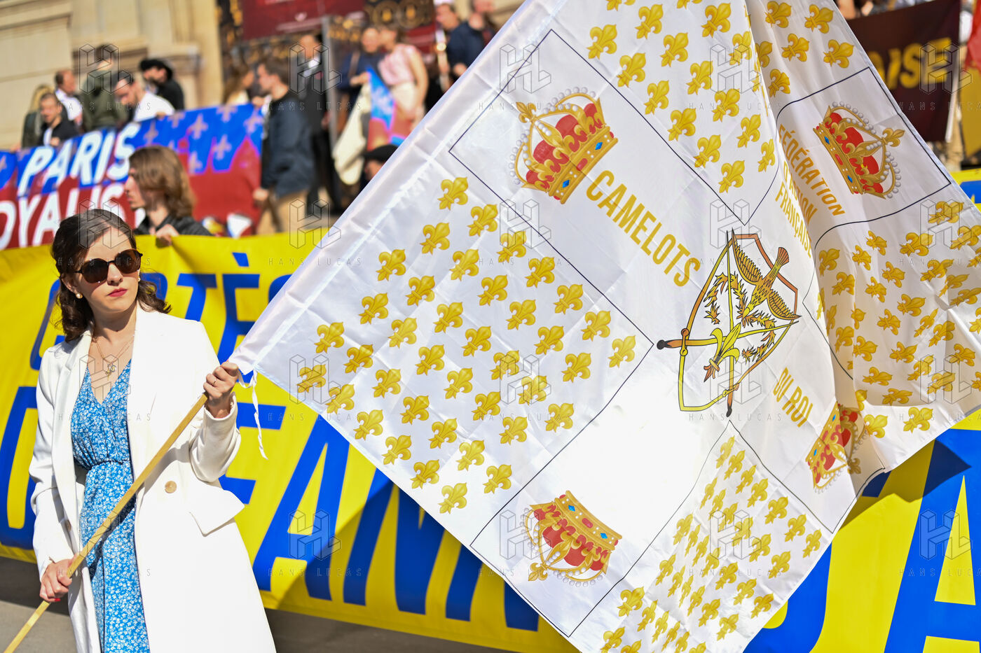 L'Action française a defilé dimanche 14 mai en hommage a Jeanne d'Arc. Le rassemblement est parti de l'Opera en direction de la statue de Jeanne d'Arc place des Pyramides.